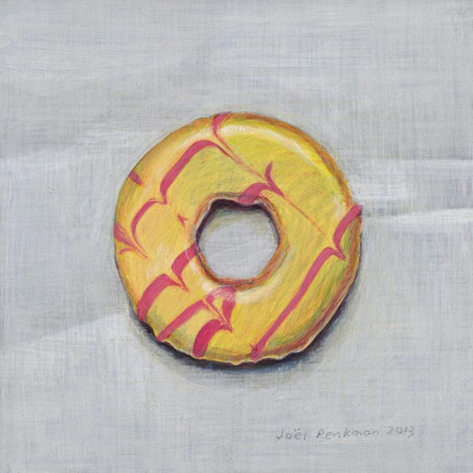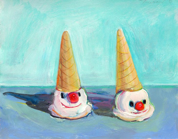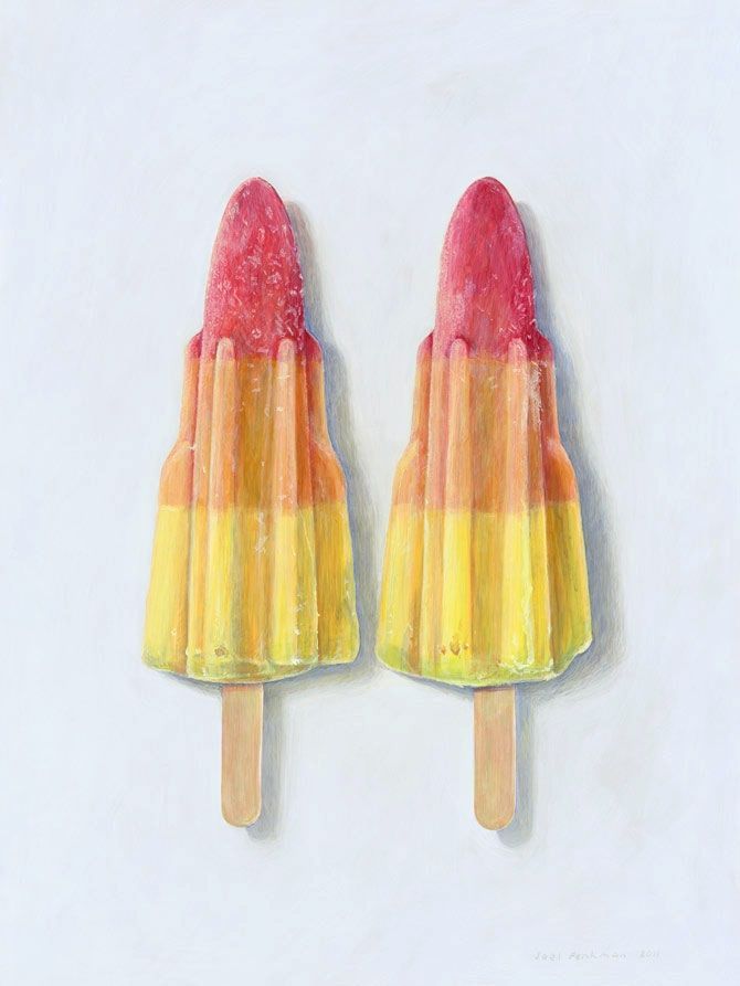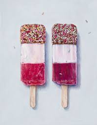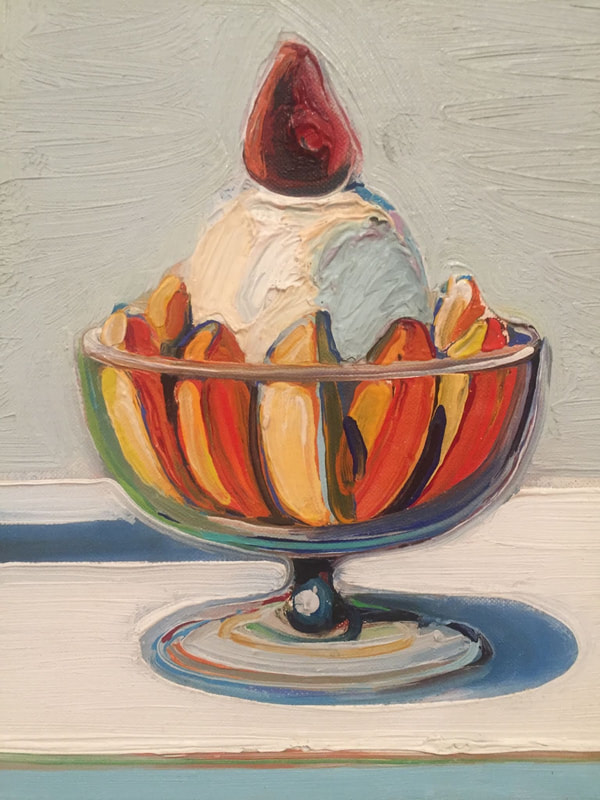 I remembered researching "Wayne Thiebaud" while I was at school, so his name was the first one that came to my mind when I went to artists who illustrate food. I love the colours that he uses and the little faces on the ice-cream made me smile.