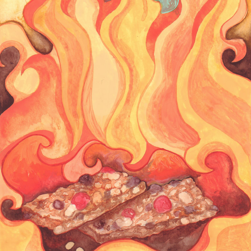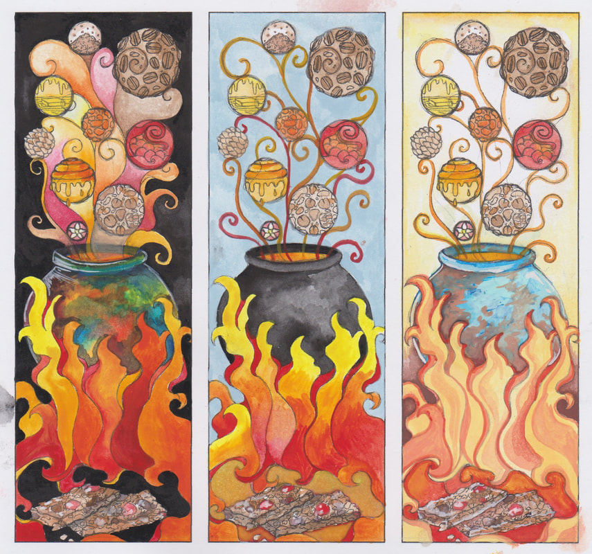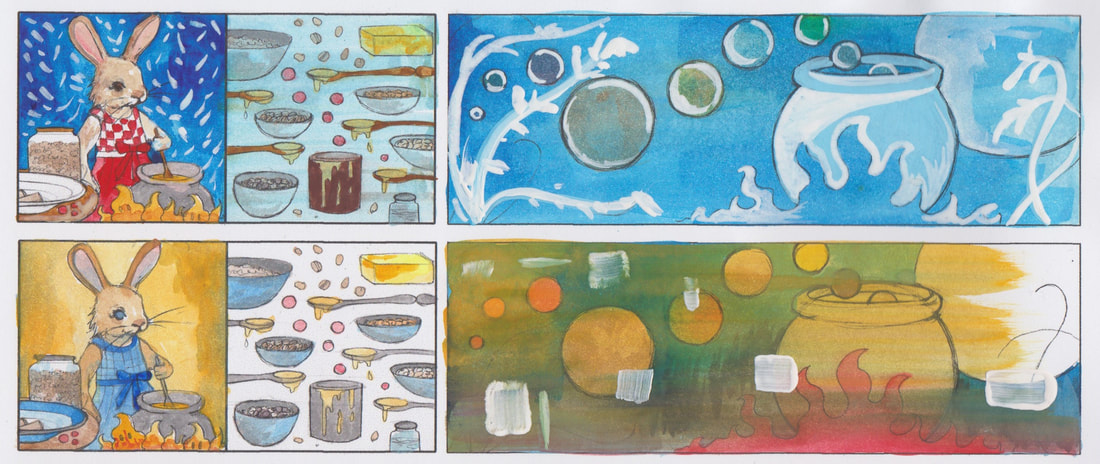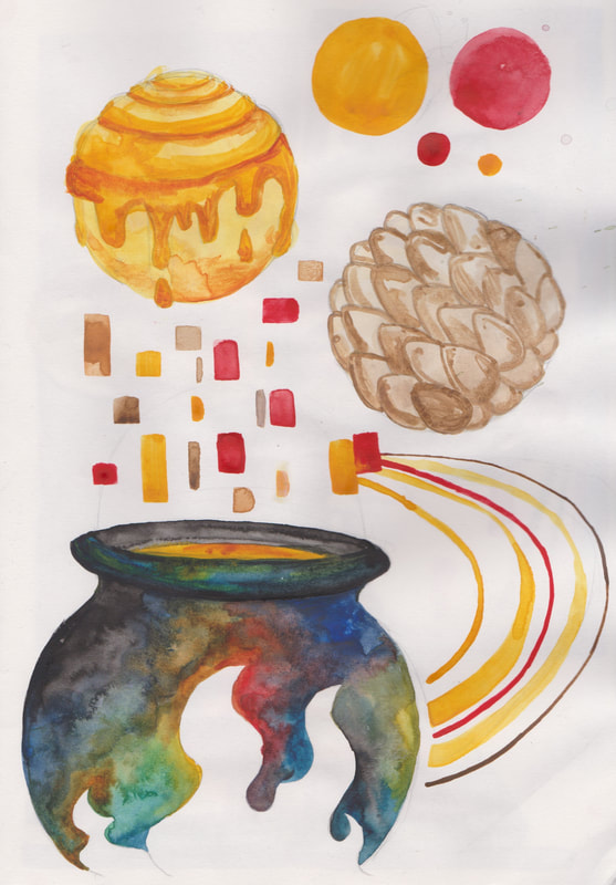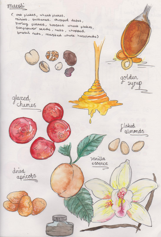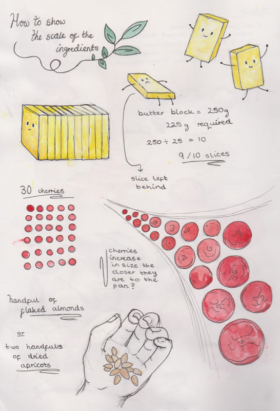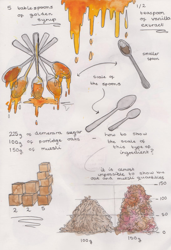 Final Piece I really like how my final piece turned out, I illustrated the ball of ingredients to reflect the visual quantities that I photographed when I was baking this recipe. Although my illustration doesn't show the exact quantifies or timing I do think it shows the baking process. I tried to make this illustration look as fun and interesting as I could, I think this would help children to engage with this illustration. My favourite part of this illustration is the way that the colours work to create a visual warmth, I also like how the swirls work alongside the balls of ingredients to give this illustration an appearance of a magical cauldron cooking the flapjacks. I had a lot of fun baking these flapjacks, and I think I have captured this within my illustration. For some reason my website has started compressing images greatly, so I separated my final piece into three different sections in the hope that the details become clearer. |