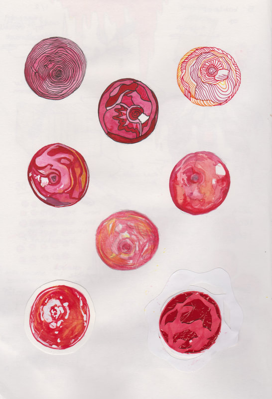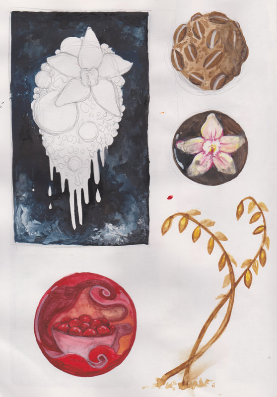 In this stage of the project I tested different mediums (watercolour, inks, pens, pencils, copic markers, paper, and quality street wrappers.