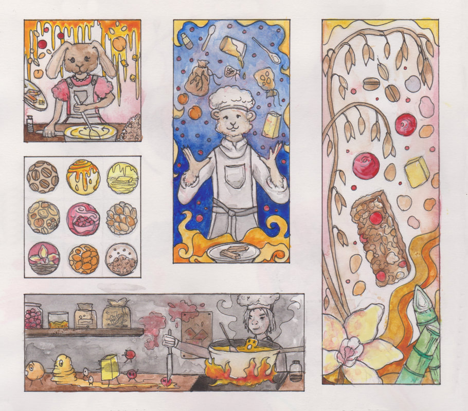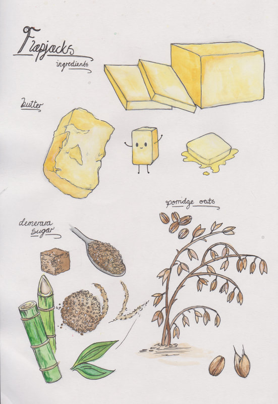 Then I can use this research to emulate some of these artists styles into my illustrations of the flapjack recipe, to test how they work.