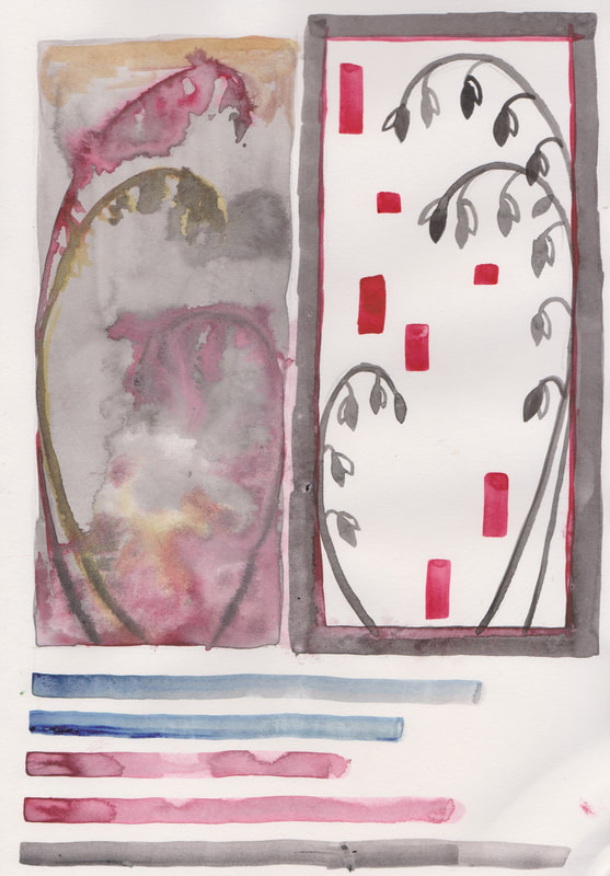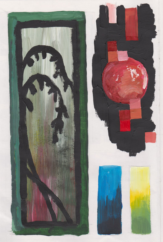 After I finished paining my developments I scanned them so I could move the elements around to see how they would look in different layouts, I have completed two sheets of layouts so far.