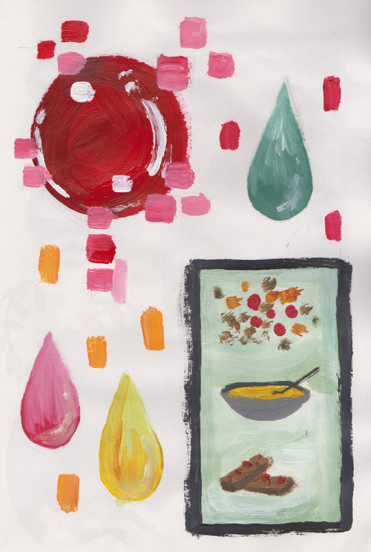 Jason Anderson is the only artist that I have included in my research that doesn't paint food, however I think that these blogs of colours would work wonderfully in a food illustration. The lines could demonstrate amounts or directions. I think this will be a fun style to play with.