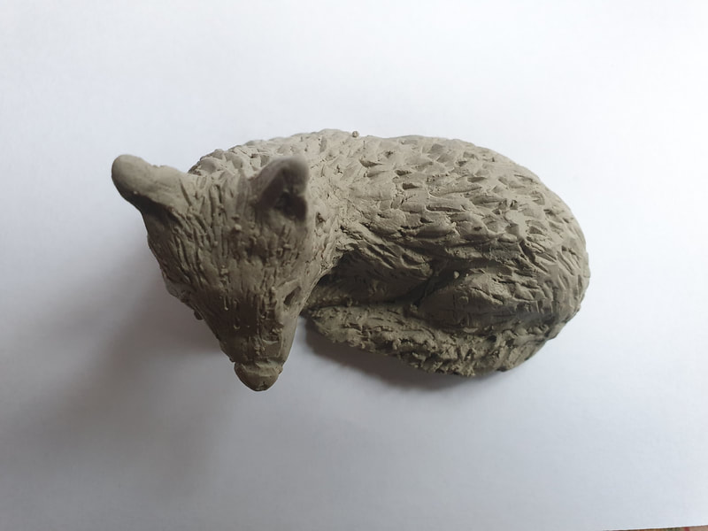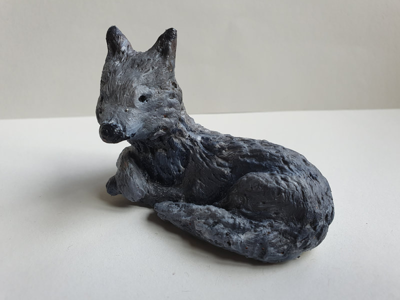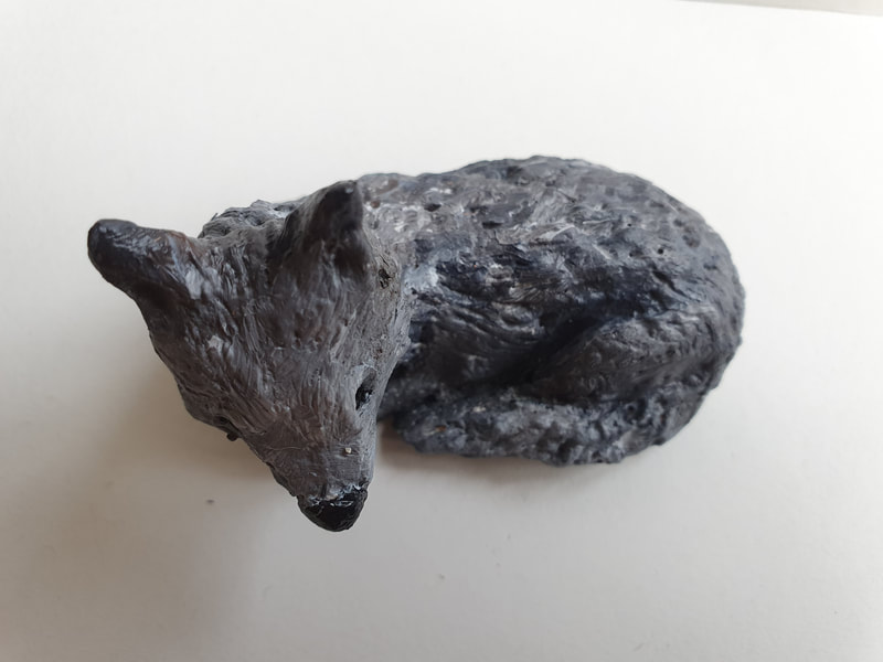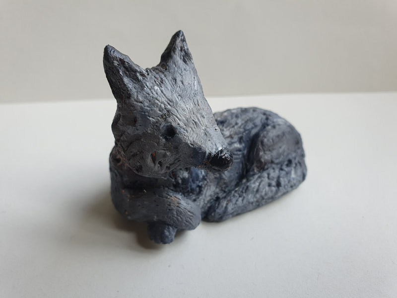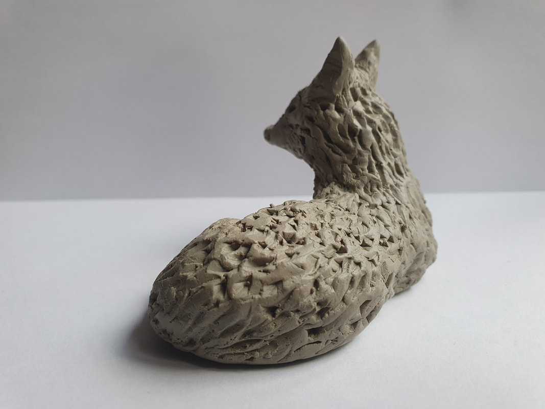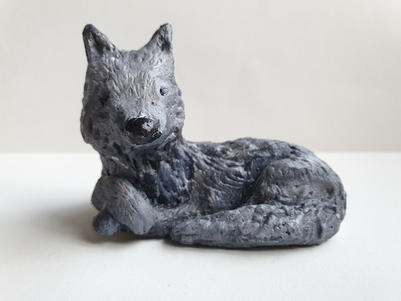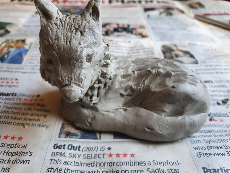 I found working with clay very difficult, making it stand up was very difficult so I ended up making the wolf lie down.