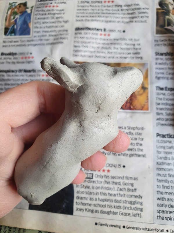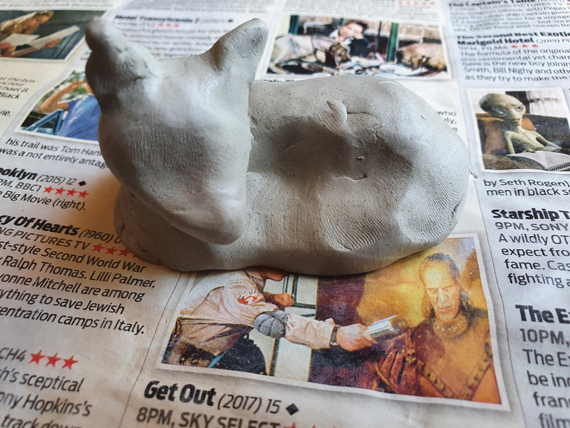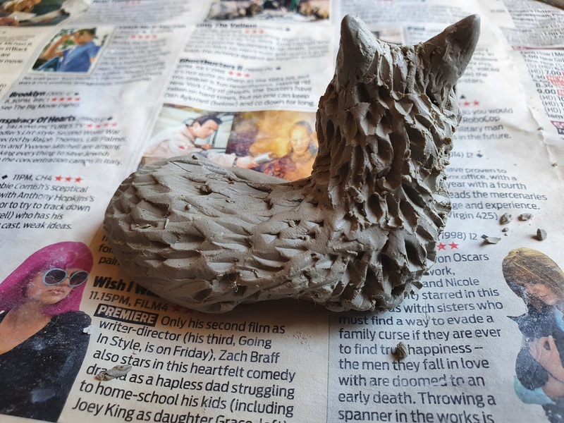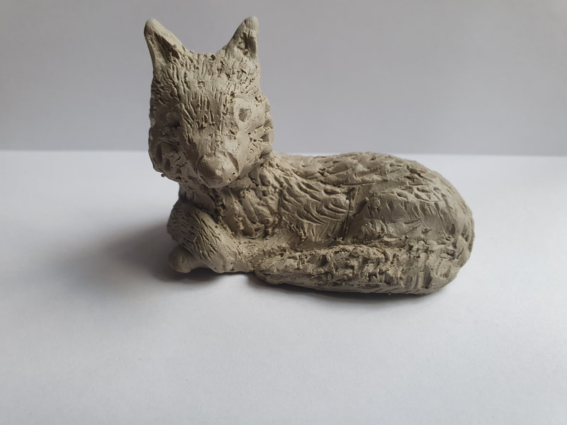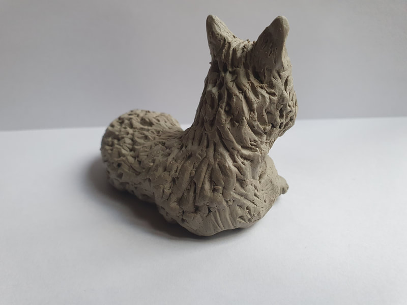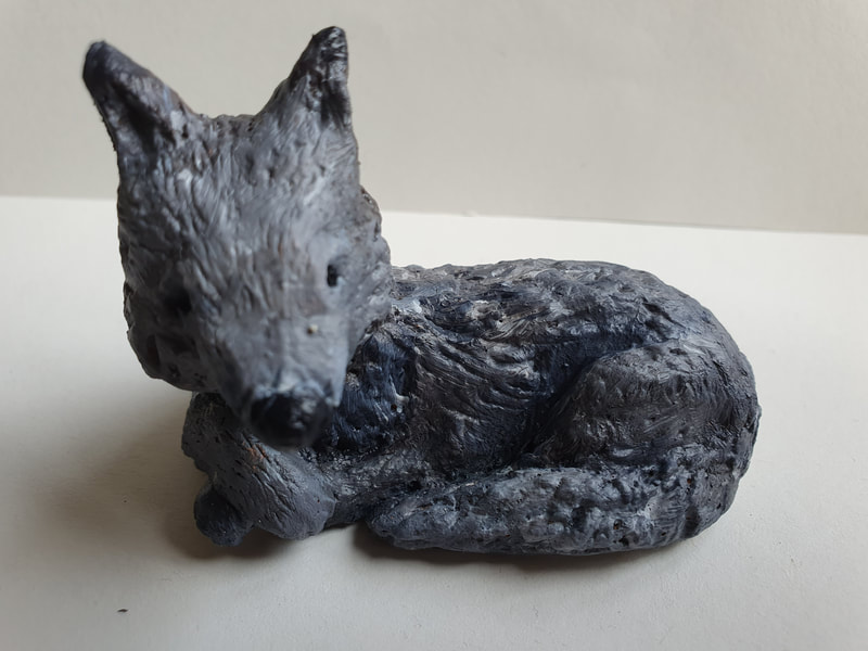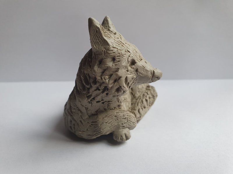 I found working with clay very difficult, making it stand up was very difficult so I ended up making the wolf lie down.