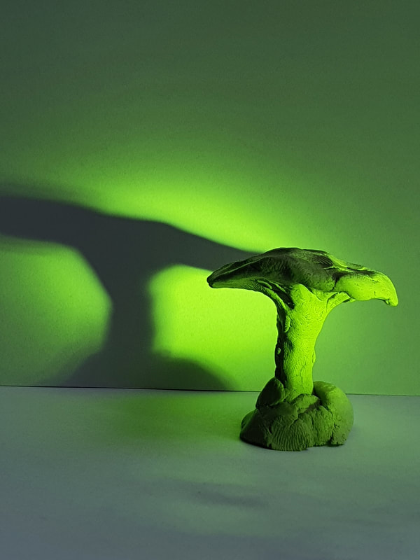 I took a lot of photographs of my final piece after I assembled it using lots of different lighting effects to try and experiment with the mood of the composition.