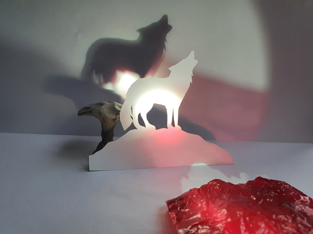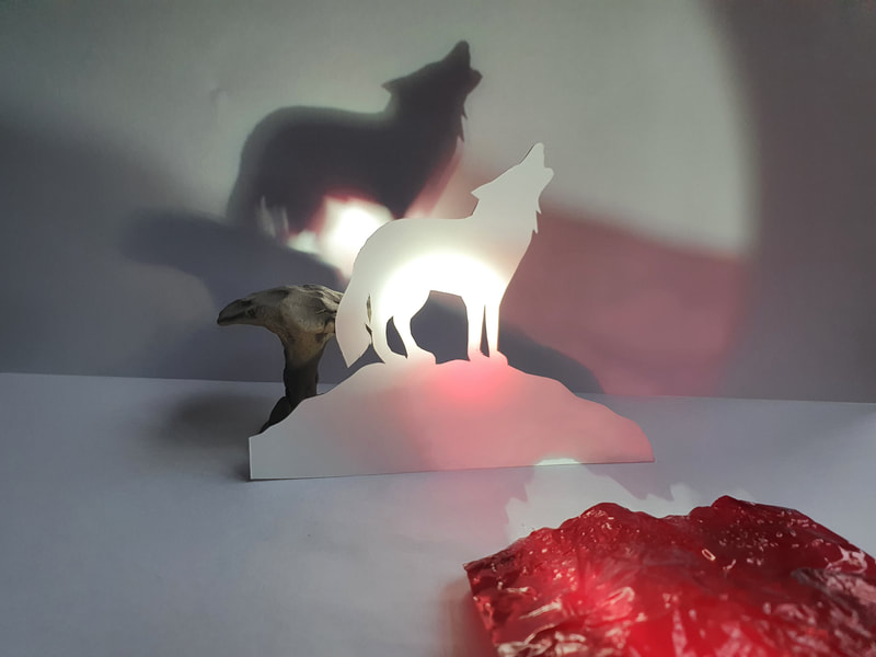 I started paper testing by cutting out shapes and using light to see what kind of shows I could create. This was inspired by the shadow scene in the climax of the "Mad Monster".