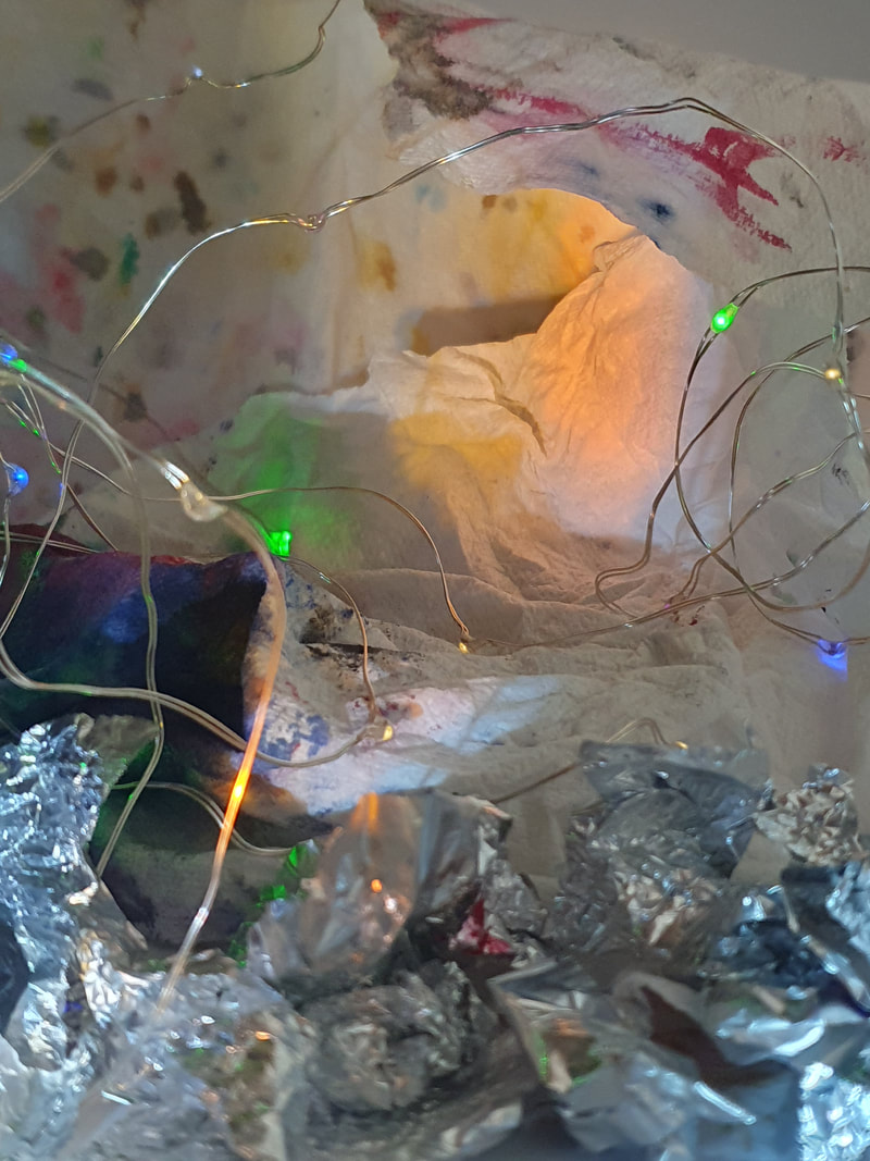I used some coloured wrappers to create some lighting effects, I like the fact that this gave me to ability