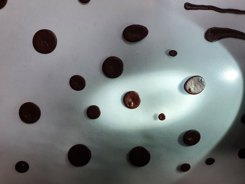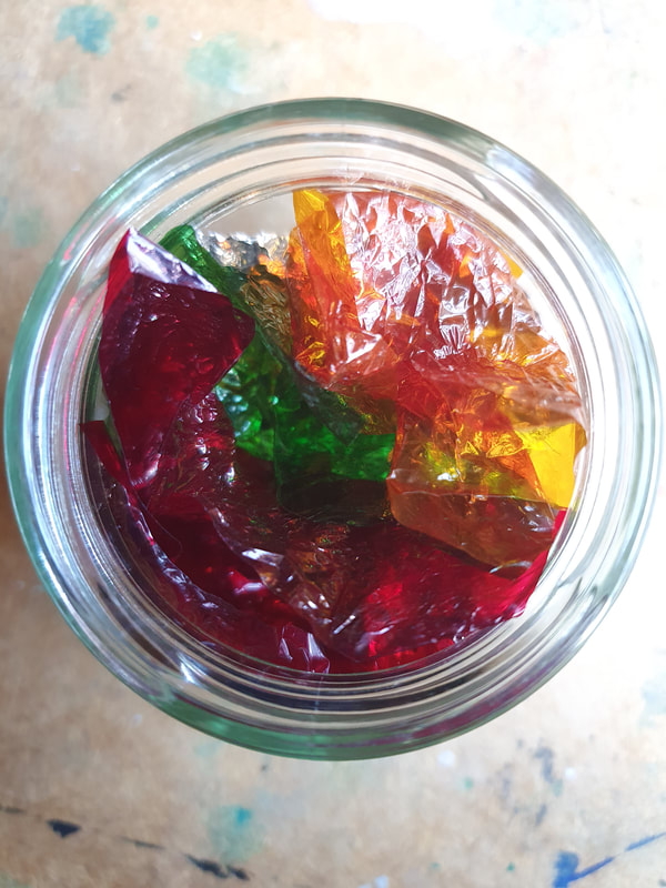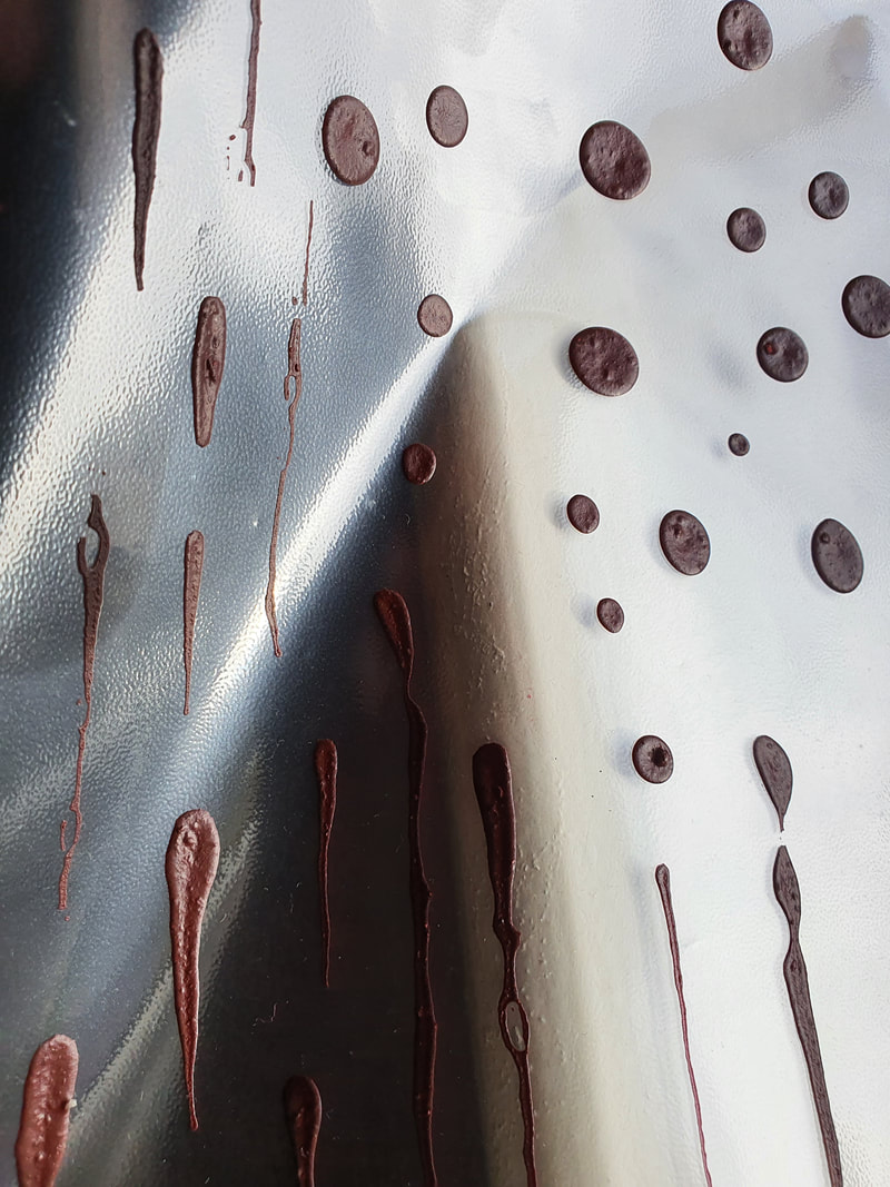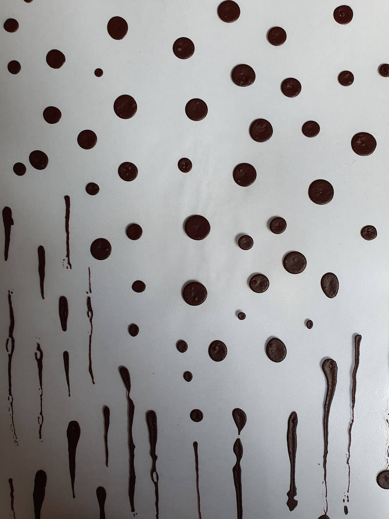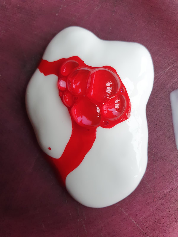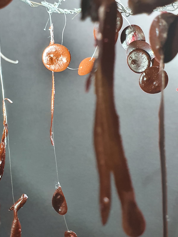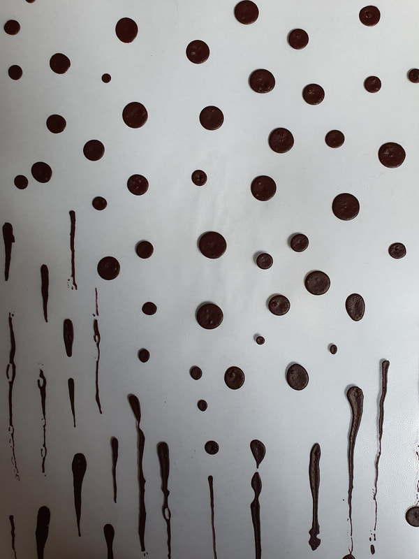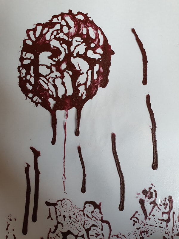 I had the idea that I could make blood drips out of coloured dried PVA glue, I'm yet to see how this works when it is hung up.
