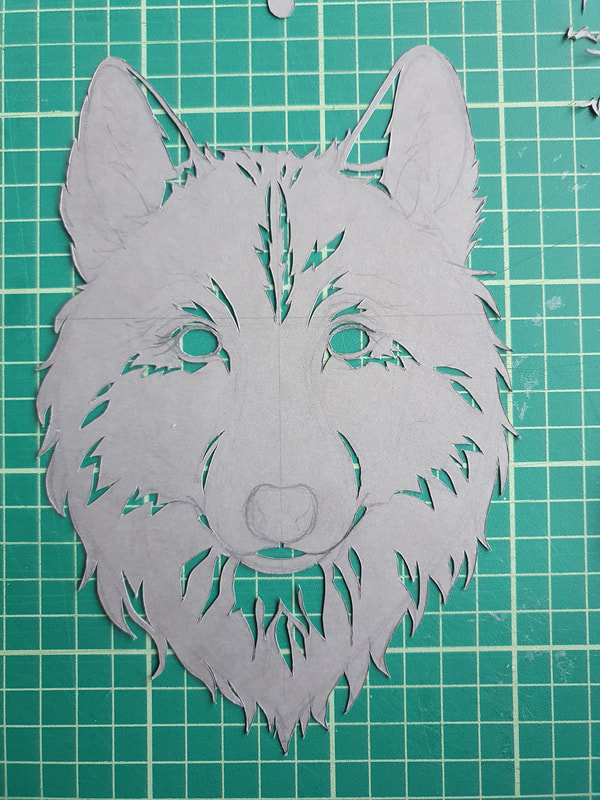 This is the start of creating a wolf paper model, I am going to add onto this design by layering up paper to create a more "3D" effect.
