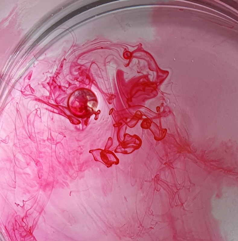 I have used water and ink to get an idea of what two liquids mixing looks like. I am not sure how I can use this, however it was interesting to look at.
