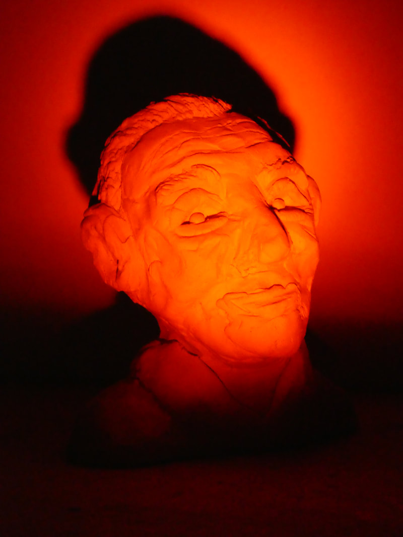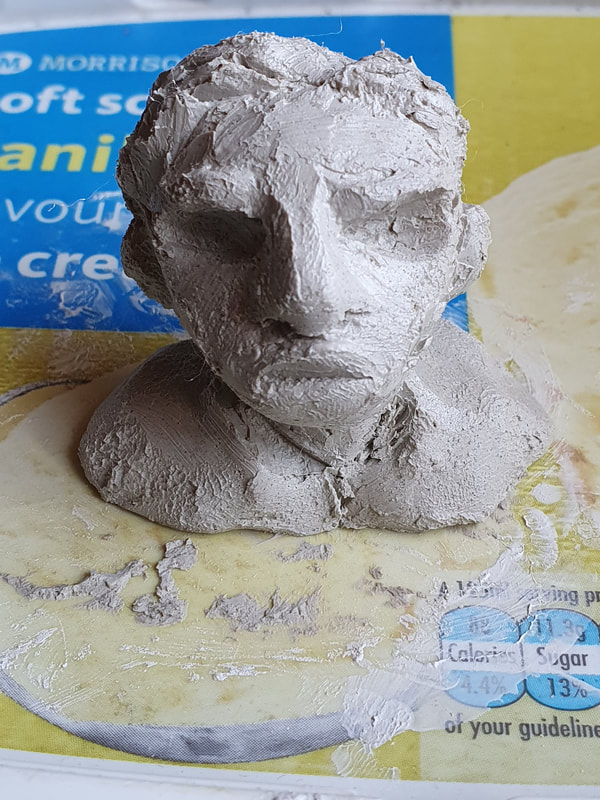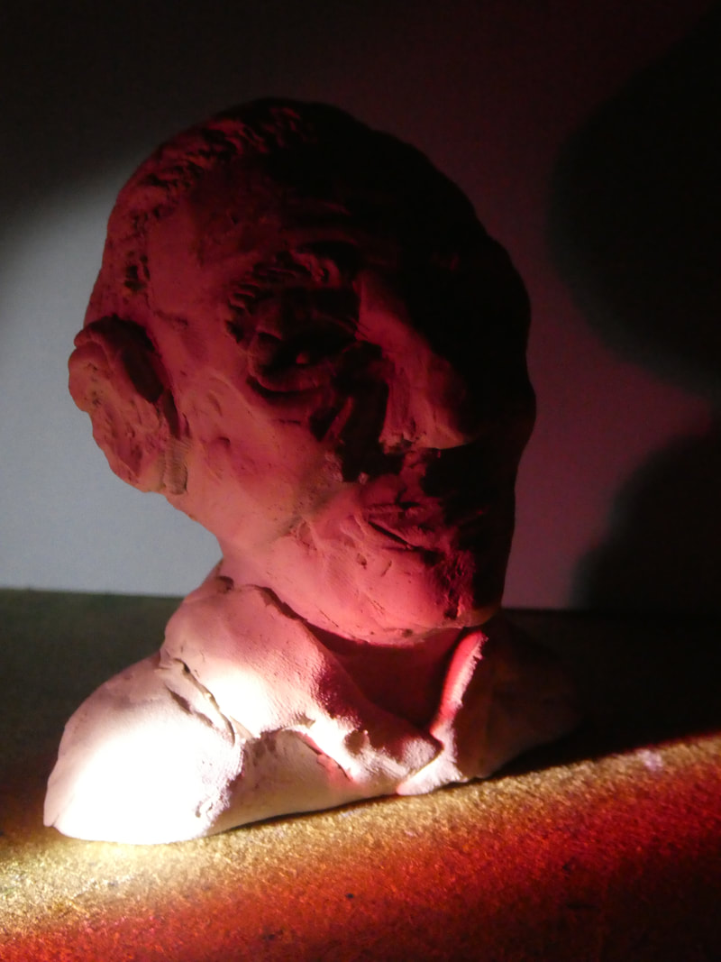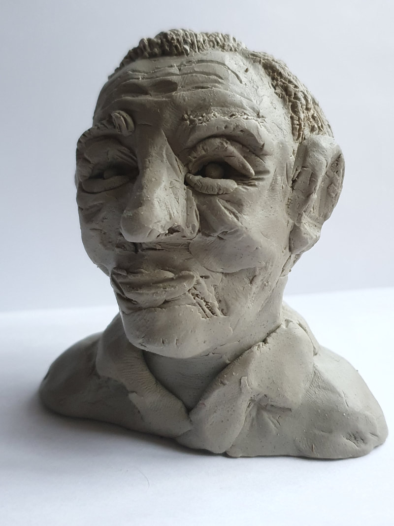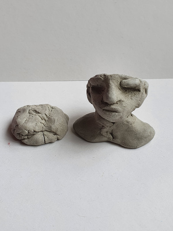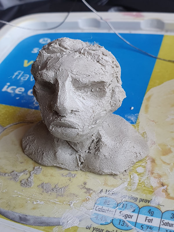 I used one of the screenshots of the scientist that I captured while watching the film to inspire a clay bust.