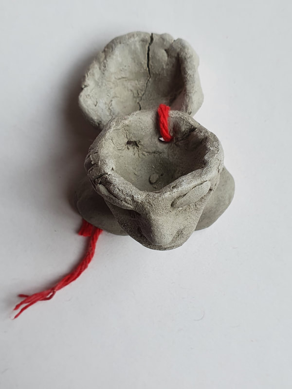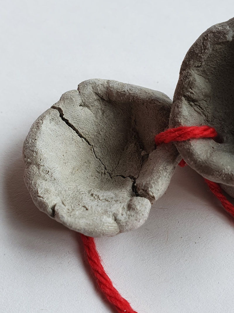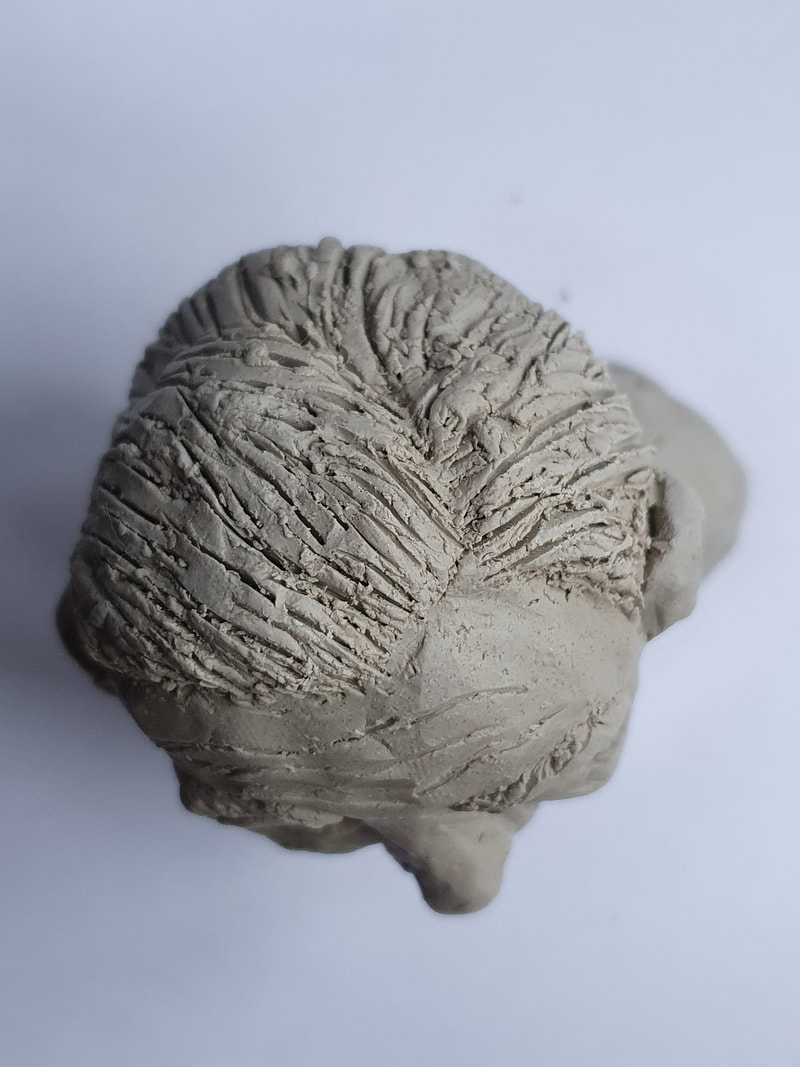 Which in turn caused the top of the head to split in half when I tried to use string to bind the clay halves together.