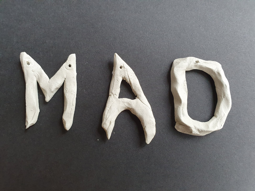 I used clay, paper and light to test how a 3D title would work, I like the clay letters best because I could hang them up.
