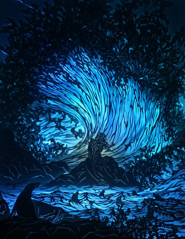 I have known about Zack McLaughlin's artwork for a while know, his skill in creating such beautiful and intricate sculptures astounds me. This is definitely a style that I want to experiment with within my material experimentations. I like the way that Katrin Rodegast used paper art in combination with real found objects such as a shoe, chair or book. I think this is an interesting concept. Combining made objects with found objects could create an interesting poster. I love Chris Sickel's use of colour within his artwork, as well as the way that he creates a visual environment. I think this is something I should experiment with, creating the film's environment could give the poster a depth of character. Celia Smith uses wire in an interesting way, she creates a skeleton appearance which allows the background to be seen through the sculpture. This also allows for interesting lighting effects and shadows. I think this style could work well to create a background or base for a design. Tony mentioned this artist in his lecture, and I loved the way she used light within her art. I think this a magical style that could be translated really well into a horror film poster. Additionally lighting played a large part in the film so this could me an interesting avenue to explore. |