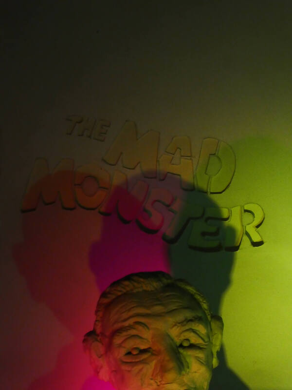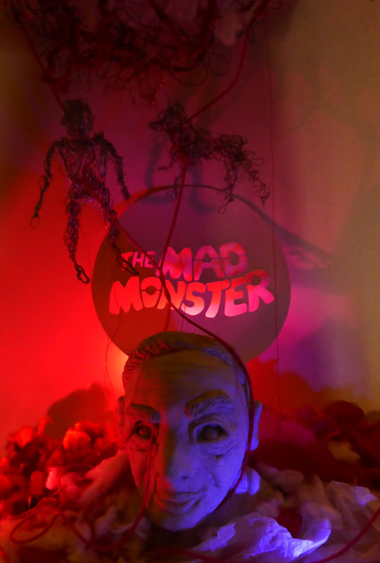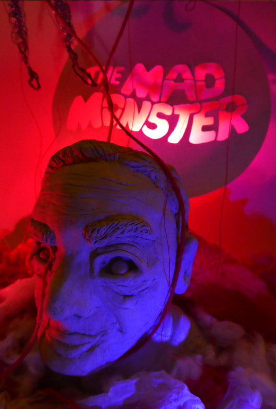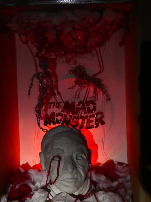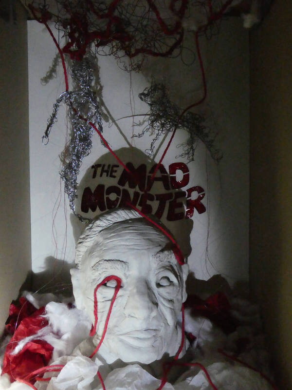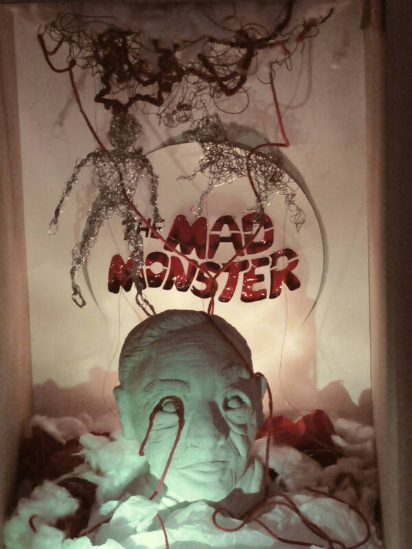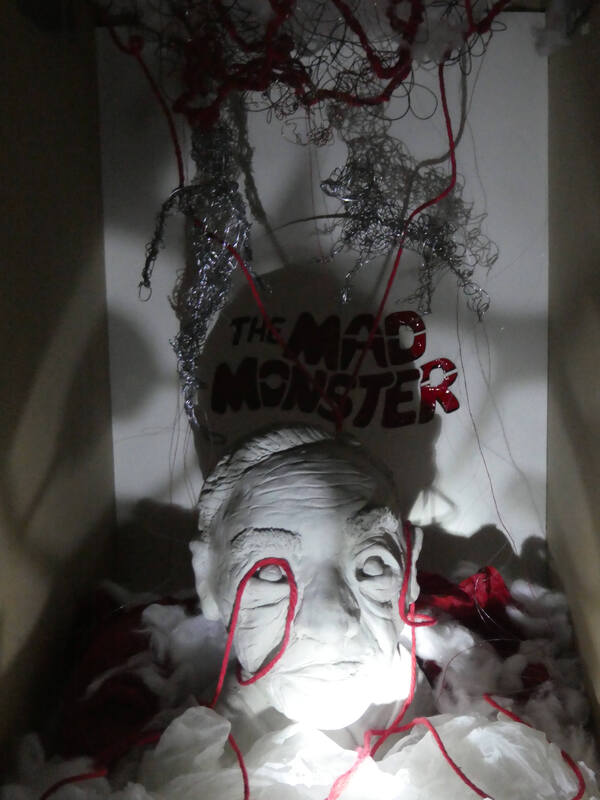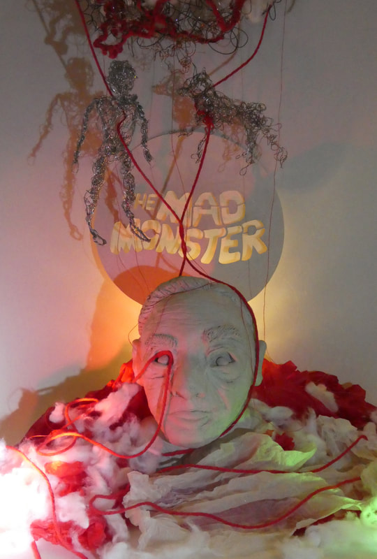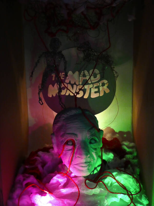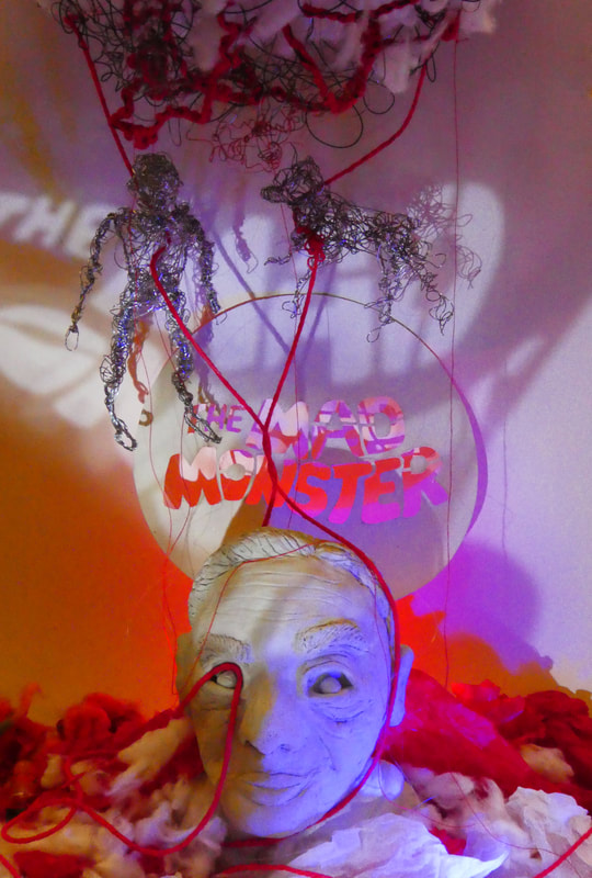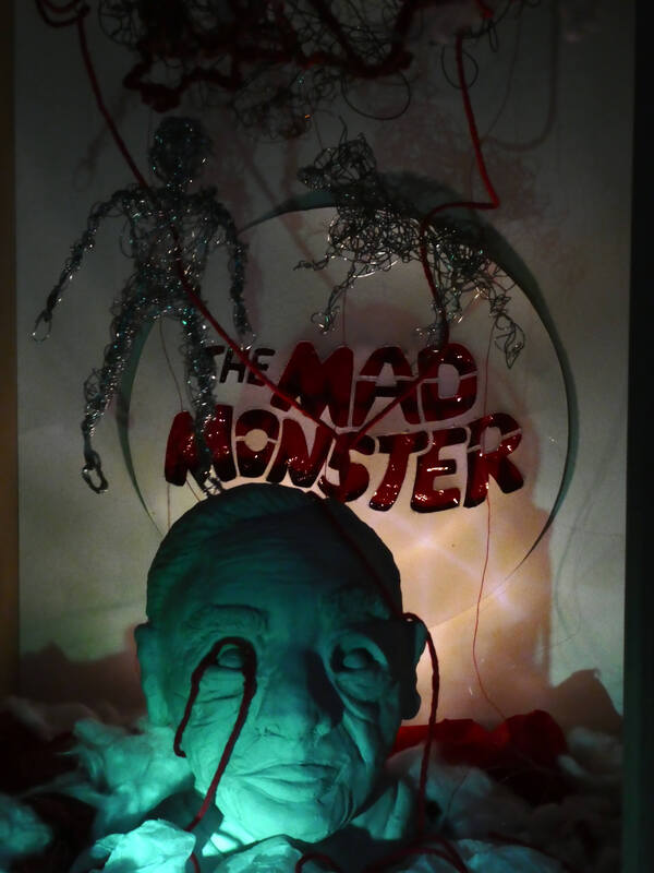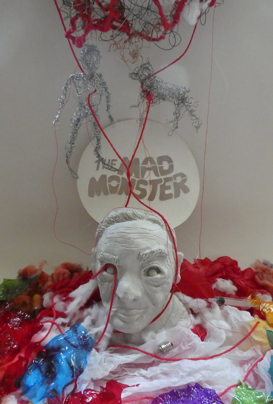 Final Poster I have selected this photograph as my final piece, unfortunately the "the" in the title has been obscured a little by the leg of the wire man. However this is still my favourite image that I have taken so far. I think that the different colours have worked well together to give the image an appearance that reflected the original "The Mad Monster" posters. I also like the way that the image is slightly messy and chaotic, this seems to reflect the mind of the scientist. Additionally I managed to create an imposing shadow behind the scientist that helps to pop him out from his background. To add to my image I decided to project the title onto the composition a second time, this has created an interesting effect that I think added to the appearance of this image. Overall I have found this 3D project to be a bit challenging, even though I did a a fair amount of testing I still found it difficult to create a whole image that could work as a poster. But I think I have learned a lot about how to work in 3D during this project. I have made some mistakes during the creation of my final piece, but I have learned from them so I will know how to make a more effective 3D illustration in the future. |