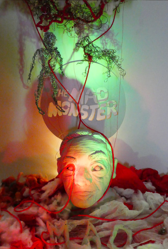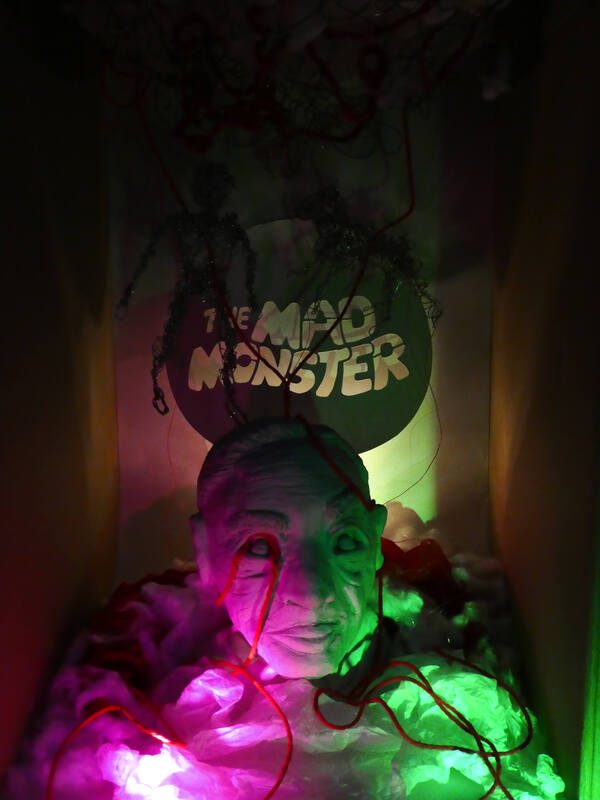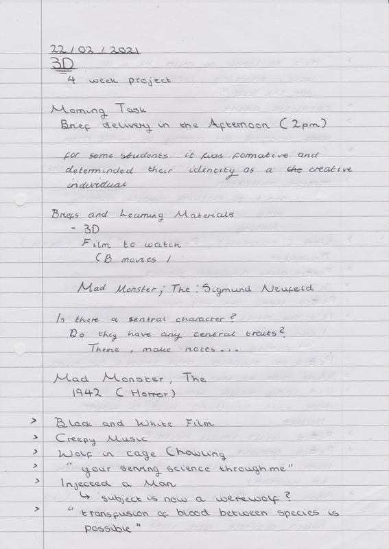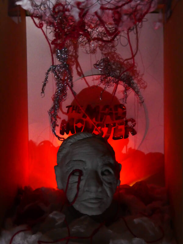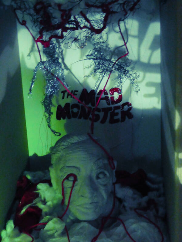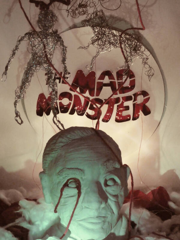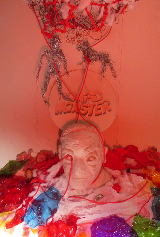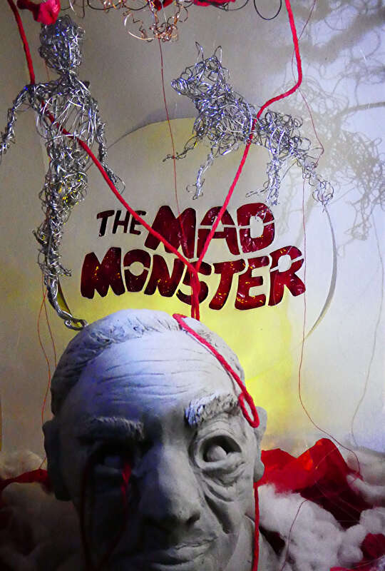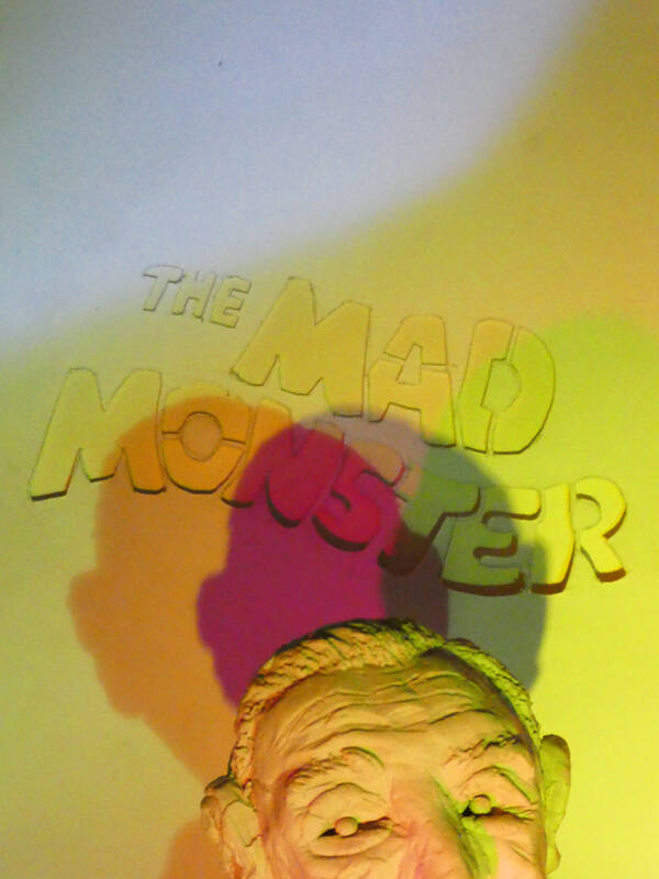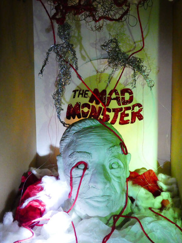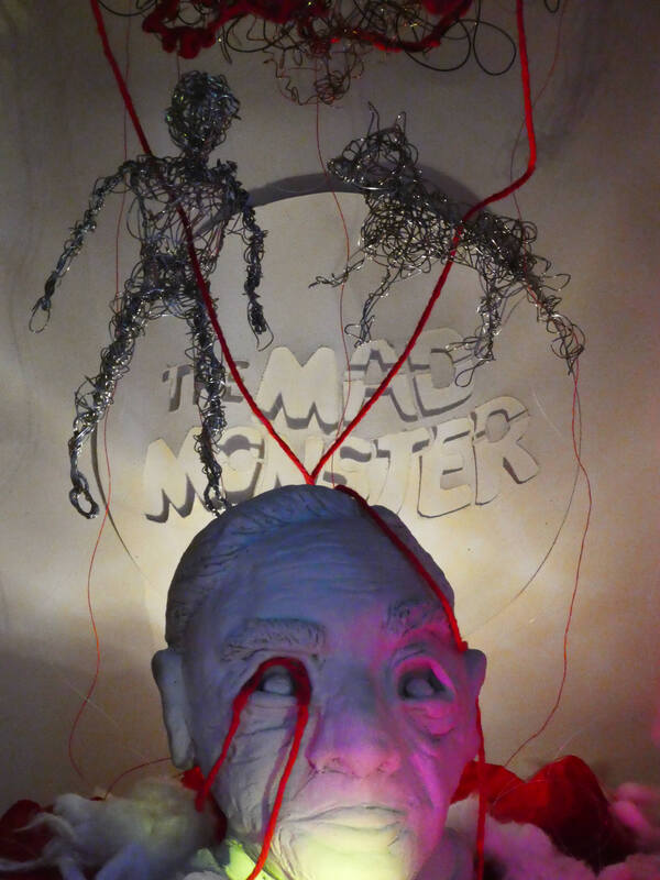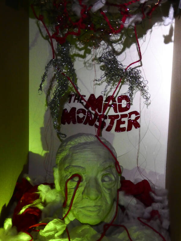 Final Poster I have selected this photograph as my final piece, unfortunately the "the" in the title has been obscured a little by the leg of the wire man. However this is still my favourite image that I have taken so far. I think that the different colours have worked well together to give the image an appearance that reflected the original "The Mad Monster" posters. I also like the way that the image is slightly messy and chaotic, this seems to reflect the mind of the scientist. Additionally I managed to create an imposing shadow behind the scientist that helps to pop him out from his background. To add to my image I decided to project the title onto the composition a second time, this has created an interesting effect that I think added to the appearance of this image. Overall I have found this 3D project to be a bit challenging, even though I did a a fair amount of testing I still found it difficult to create a whole image that could work as a poster. But I think I have learned a lot about how to work in 3D during this project. I have made some mistakes during the creation of my final piece, but I have learned from them so I will know how to make a more effective 3D illustration in the future. |