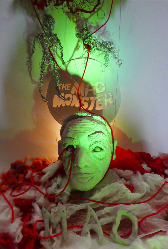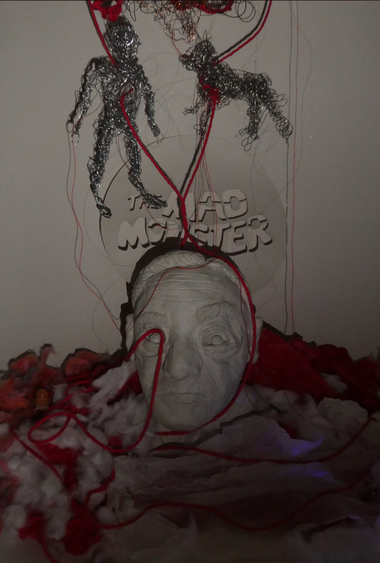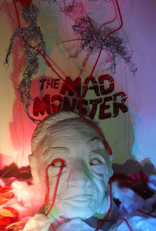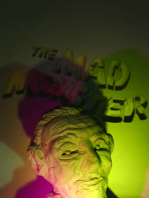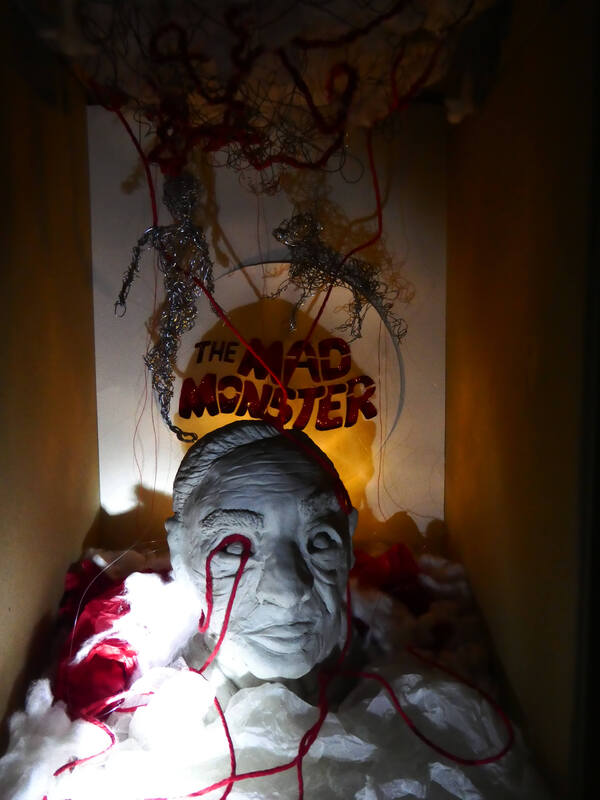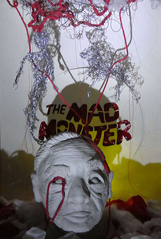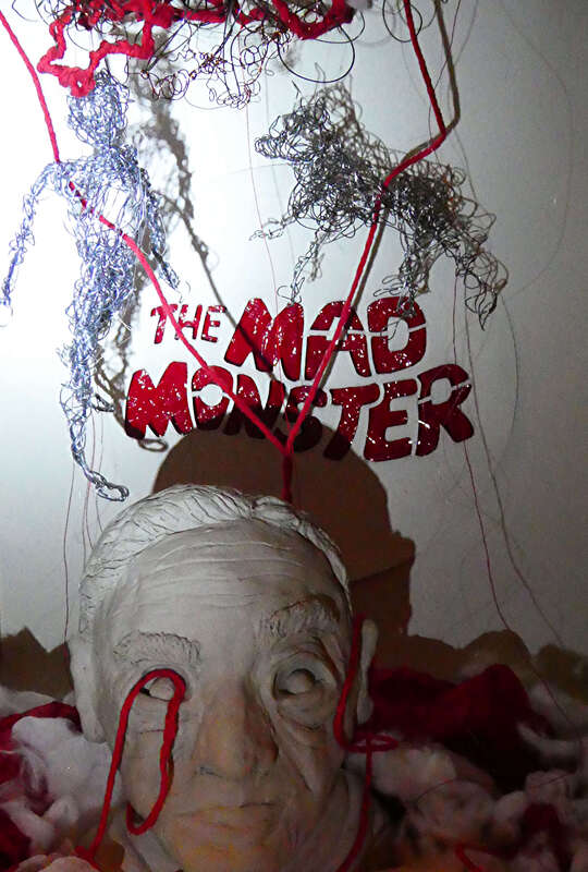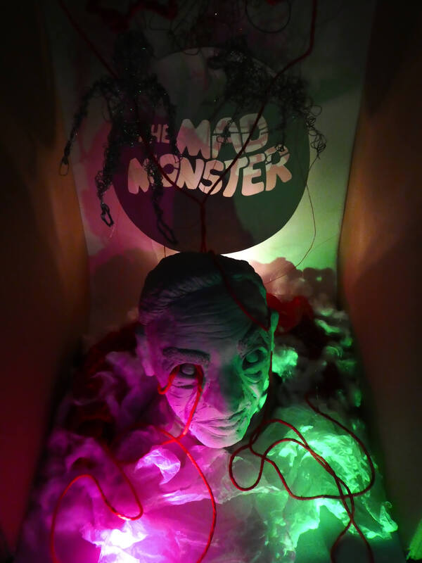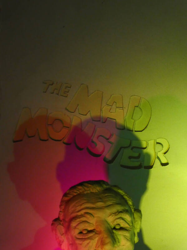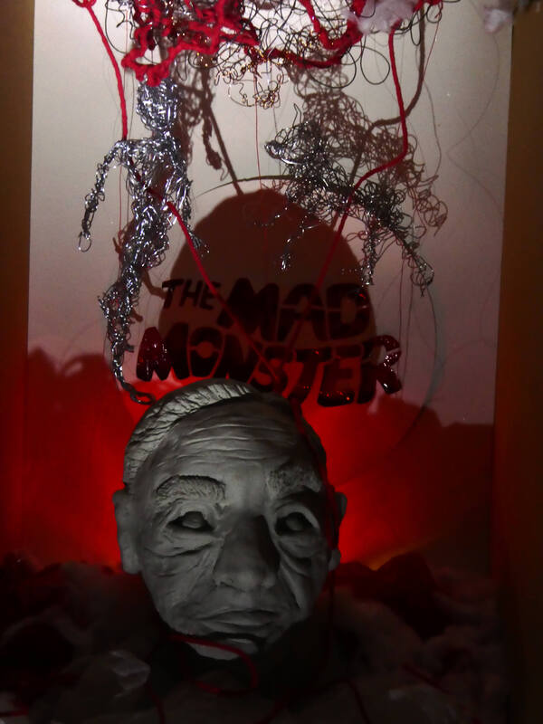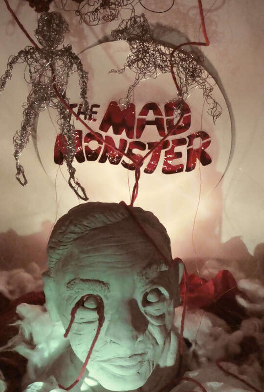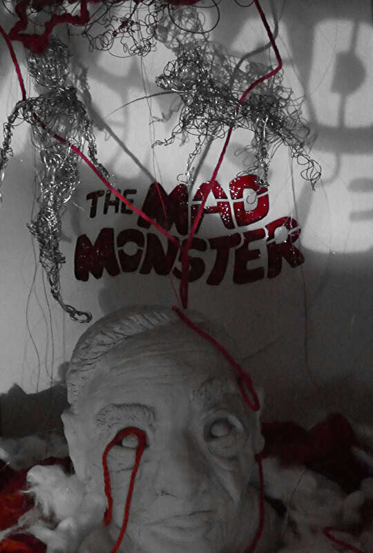 Final Poster I have selected this photograph as my final piece, unfortunately the "the" in the title has been obscured a little by the leg of the wire man. However this is still my favourite image that I have taken so far. I think that the different colours have worked well together to give the image an appearance that reflected the original "The Mad Monster" posters. I also like the way that the image is slightly messy and chaotic, this seems to reflect the mind of the scientist. Additionally I managed to create an imposing shadow behind the scientist that helps to pop him out from his background. To add to my image I decided to project the title onto the composition a second time, this has created an interesting effect that I think added to the appearance of this image. Overall I have found this 3D project to be a bit challenging, even though I did a a fair amount of testing I still found it difficult to create a whole image that could work as a poster. But I think I have learned a lot about how to work in 3D during this project. I have made some mistakes during the creation of my final piece, but I have learned from them so I will know how to make a more effective 3D illustration in the future. |