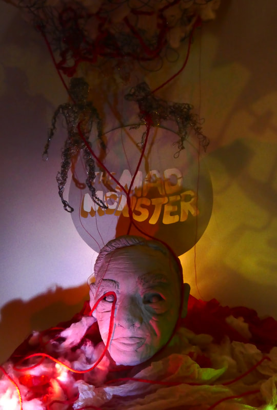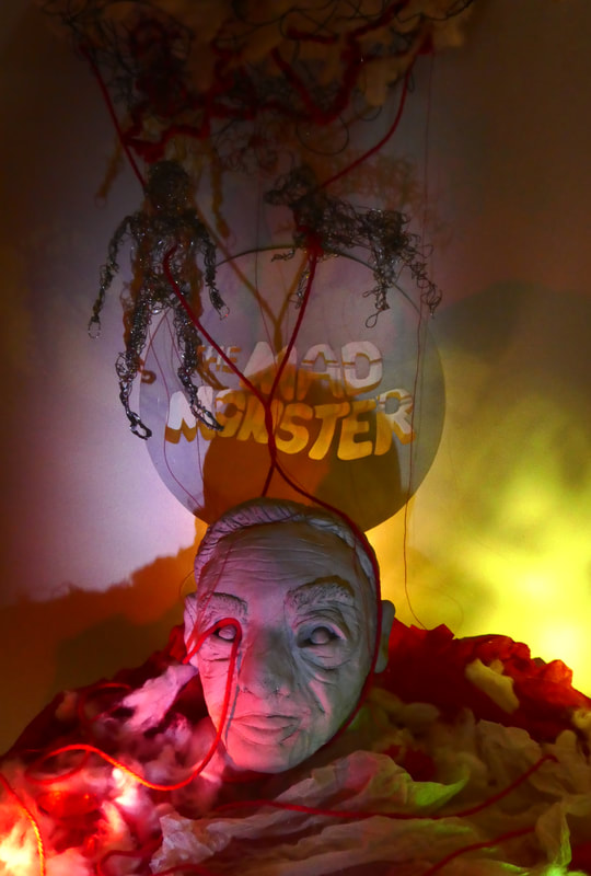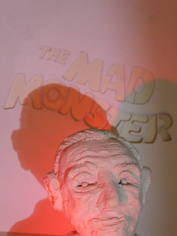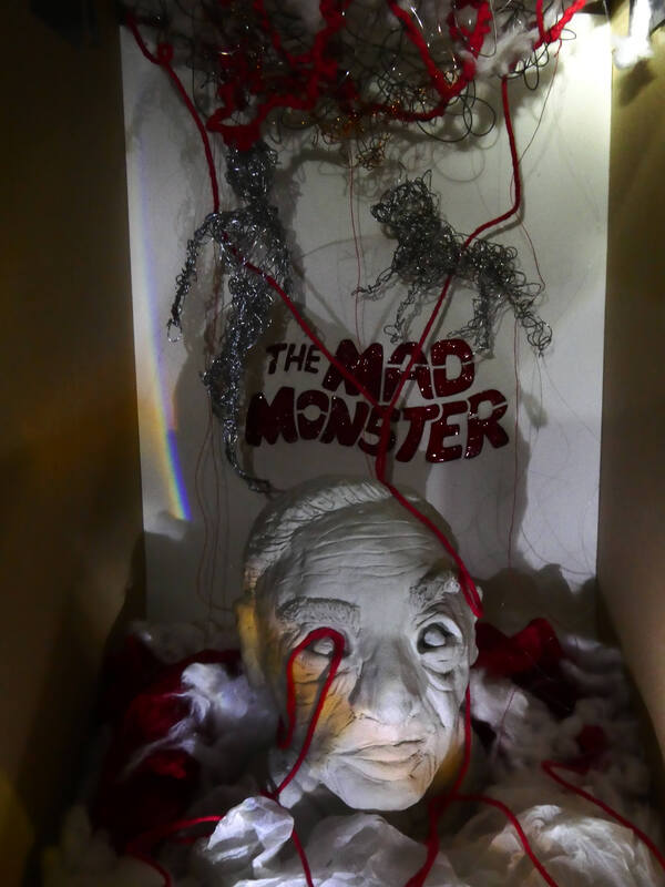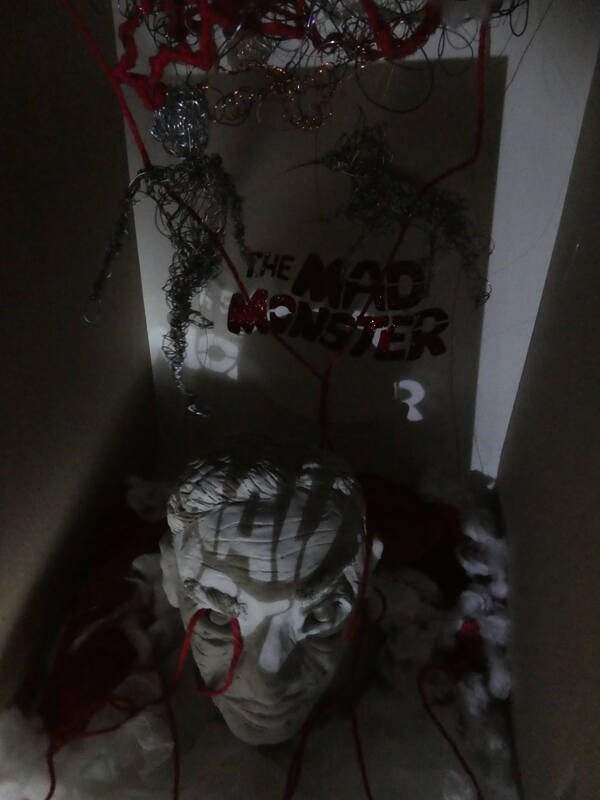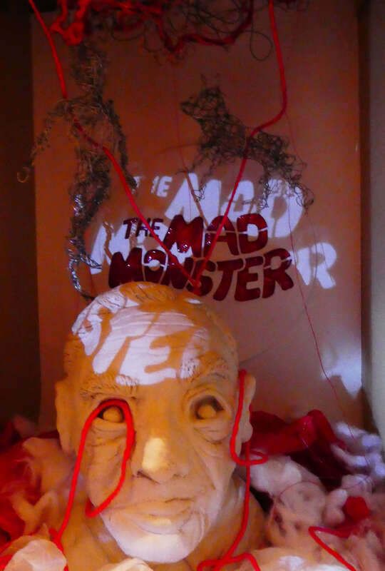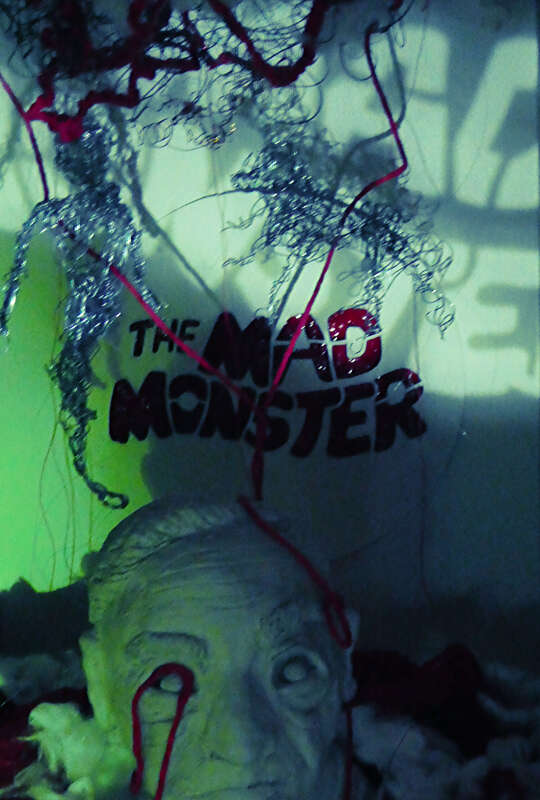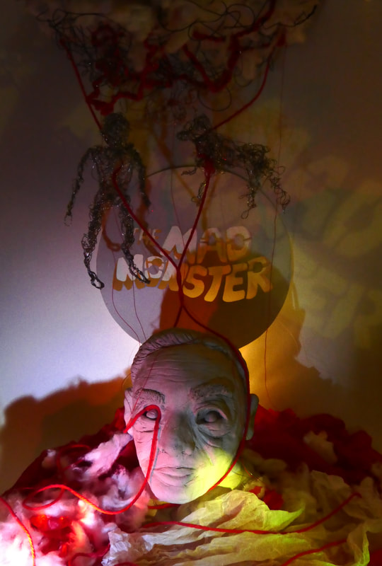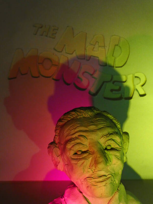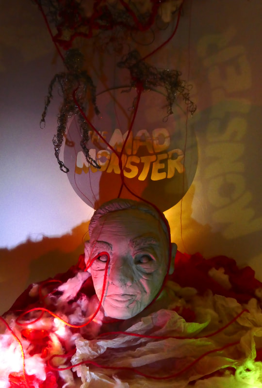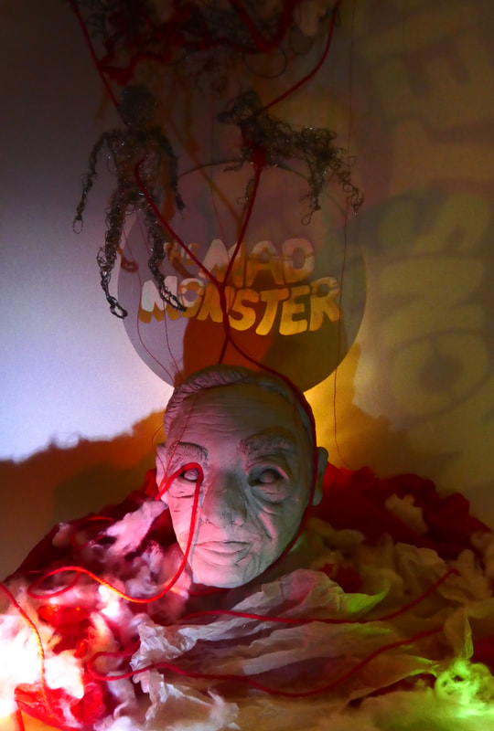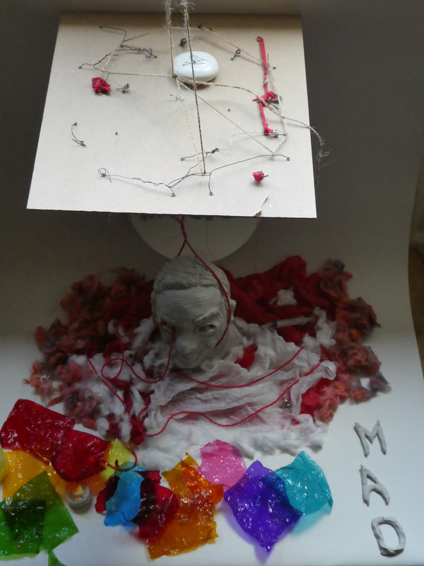 Final Poster I have selected this photograph as my final piece, unfortunately the "the" in the title has been obscured a little by the leg of the wire man. However this is still my favourite image that I have taken so far. I think that the different colours have worked well together to give the image an appearance that reflected the original "The Mad Monster" posters. I also like the way that the image is slightly messy and chaotic, this seems to reflect the mind of the scientist. Additionally I managed to create an imposing shadow behind the scientist that helps to pop him out from his background. To add to my image I decided to project the title onto the composition a second time, this has created an interesting effect that I think added to the appearance of this image. Overall I have found this 3D project to be a bit challenging, even though I did a a fair amount of testing I still found it difficult to create a whole image that could work as a poster. But I think I have learned a lot about how to work in 3D during this project. I have made some mistakes during the creation of my final piece, but I have learned from them so I will know how to make a more effective 3D illustration in the future. |
