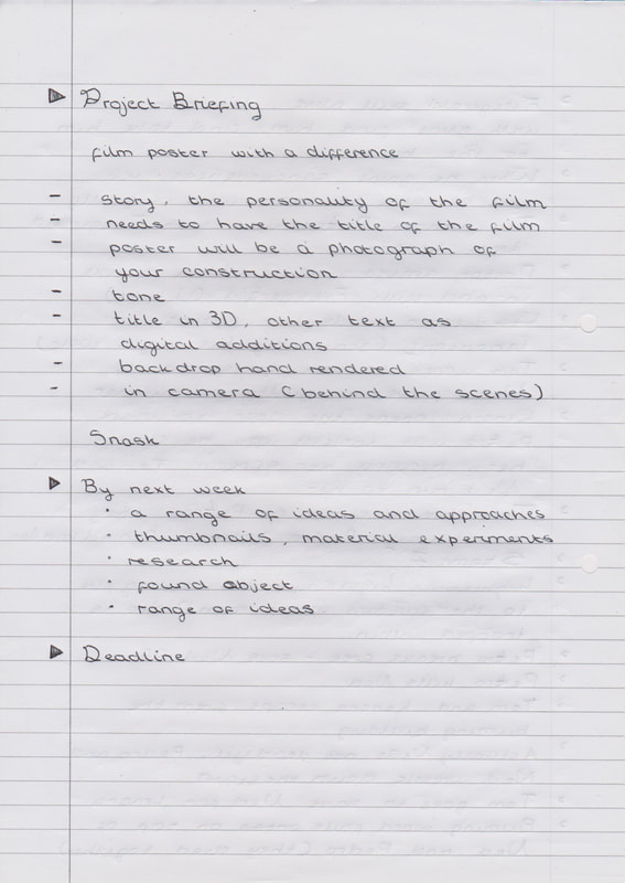 Explore alternative strategies and visual treatments that respond to some aspect of the films narrative or general tone. We're looking for a wide range of initial considerations here so be creative. Whilst your poster will be constructed in 3D your visuals can be 2D thumbnails and sketches. You will also need to explore the potential means of construction in order to inform your ideas.