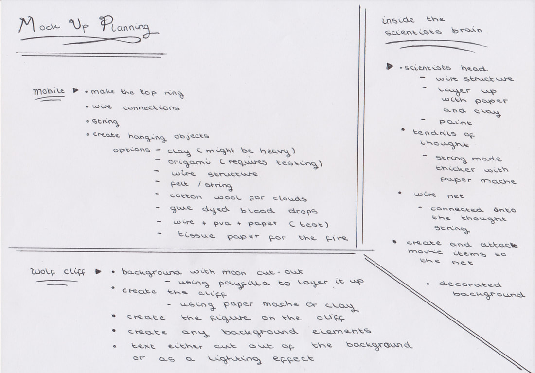 After creating this structure I used cotton wool to pad out the top of the structure, I thought that this gave the structure a foggy quality, which tied into the scientist's clouded mind.