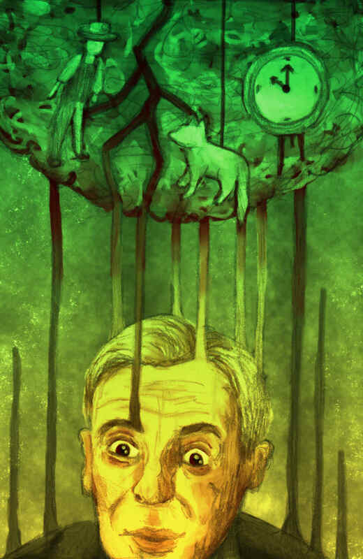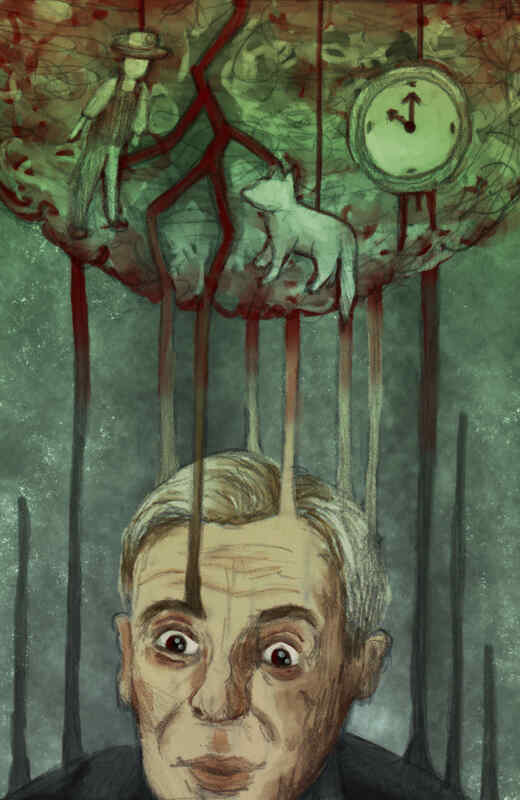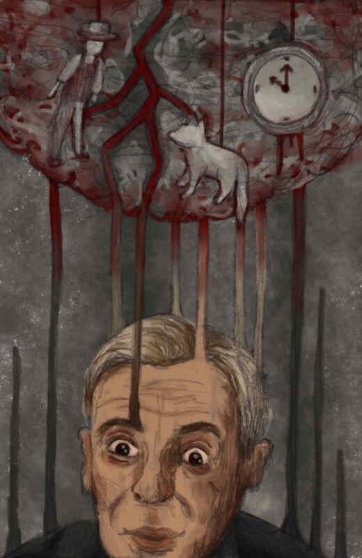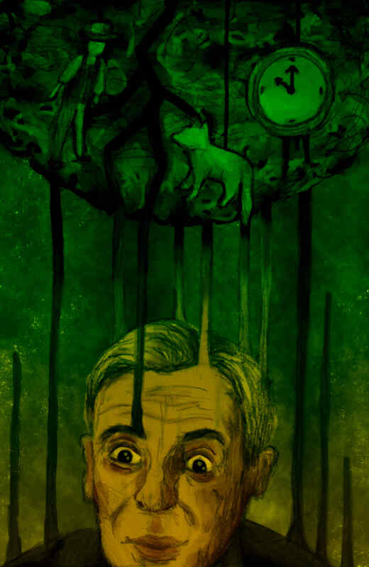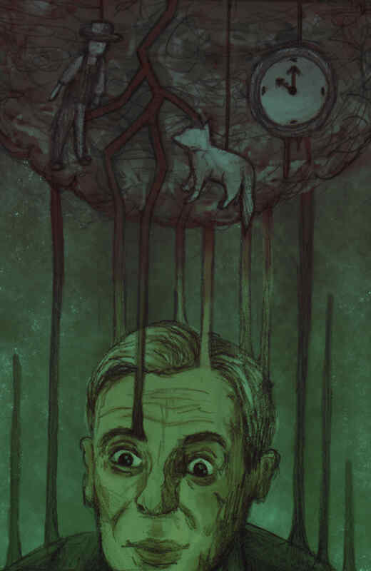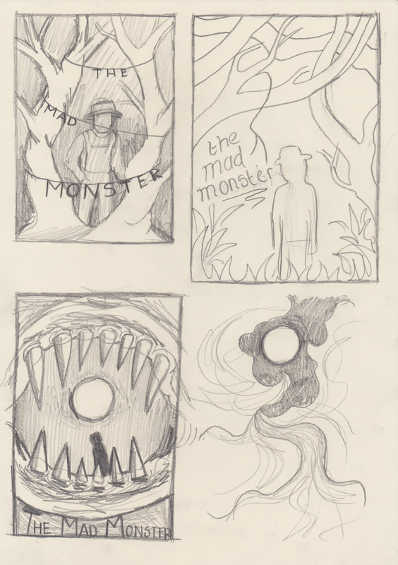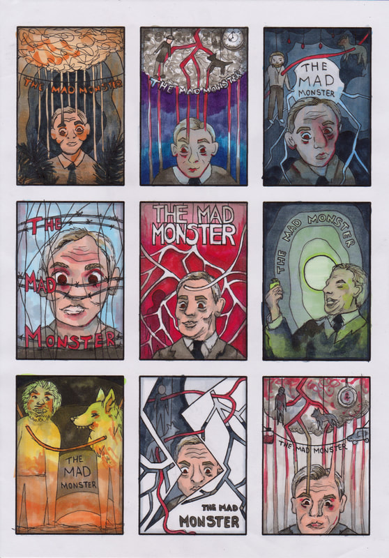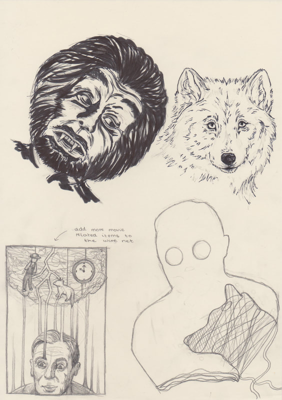 Inside the Scientist's Brain As suggested in the last feedback I started to look at the character of the werewolf (Pedro), however after some consideration I decided that the true "Mad Monster" is the scientist himself. Pedro was a nice person before the scientist performed the blood transfusion, and as the architect of every terrible act that happened within the film I thought it was only right to recognise the scientist as the monster he truly is. |