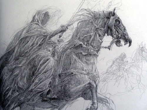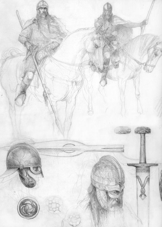 One of my favourite illustrators is Alan Lee, the skill he has is astounding! Every sketch has life breathed into it through the tones and marks that are used within the images. It feels like an injustice to call these images "sketches" because even on their own they are a masterpiece in my eyes. Alan Lee created all of the character illustrations that feature at the end of "Lord of the Rings, Return of the Ring", these were featured alongside some of the concept art created during the production of Lord of the Rings. The character illustrations were created after a suggesting by Ian McKellan to Alan Lee, these character sketches were created from a production still of each actor and presented to them after filming ended. |