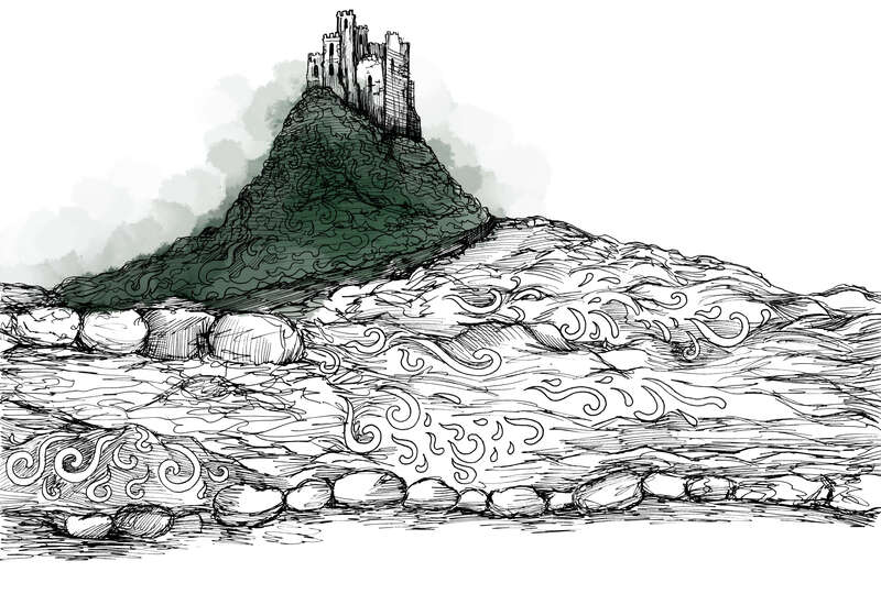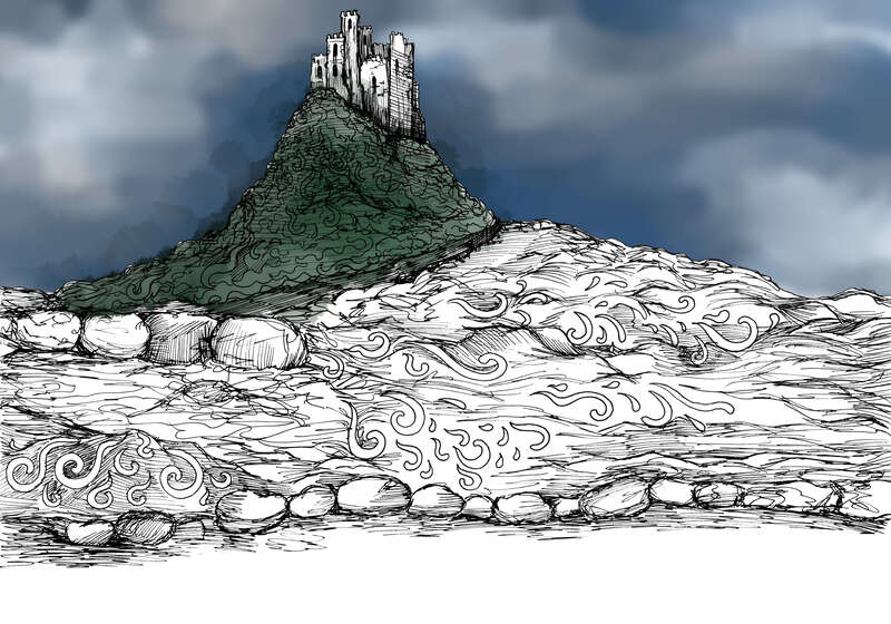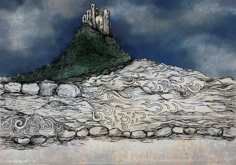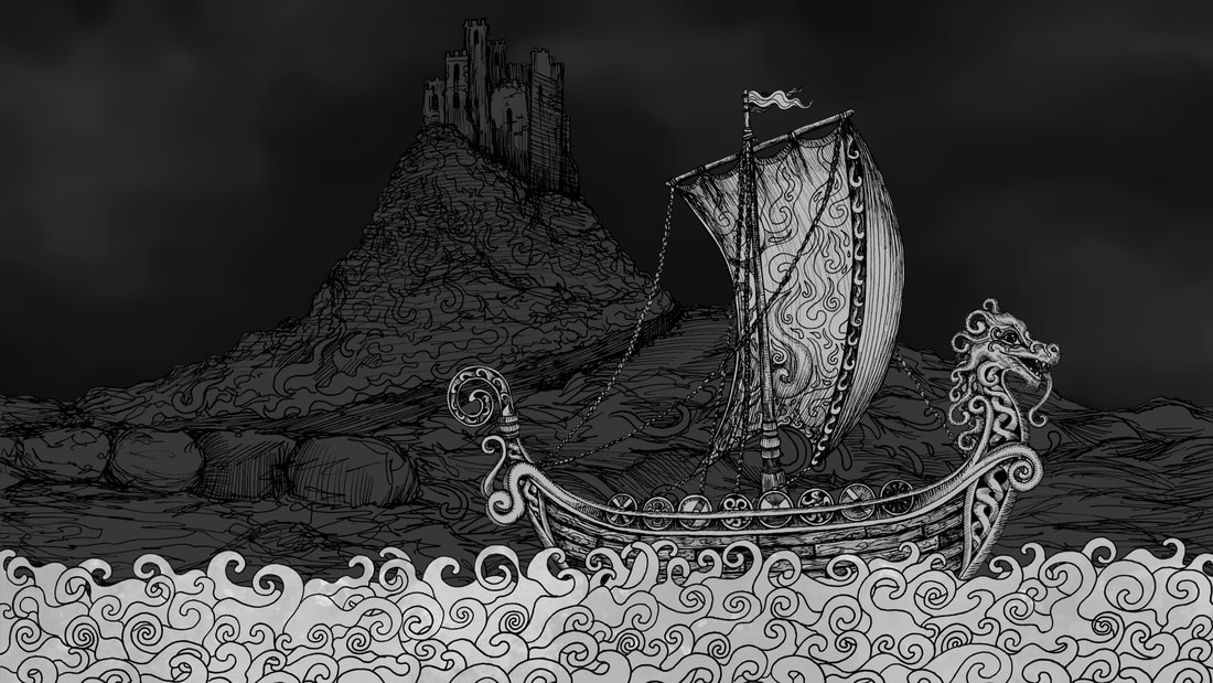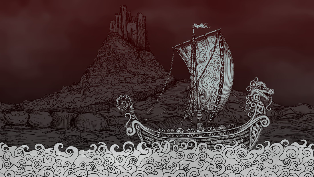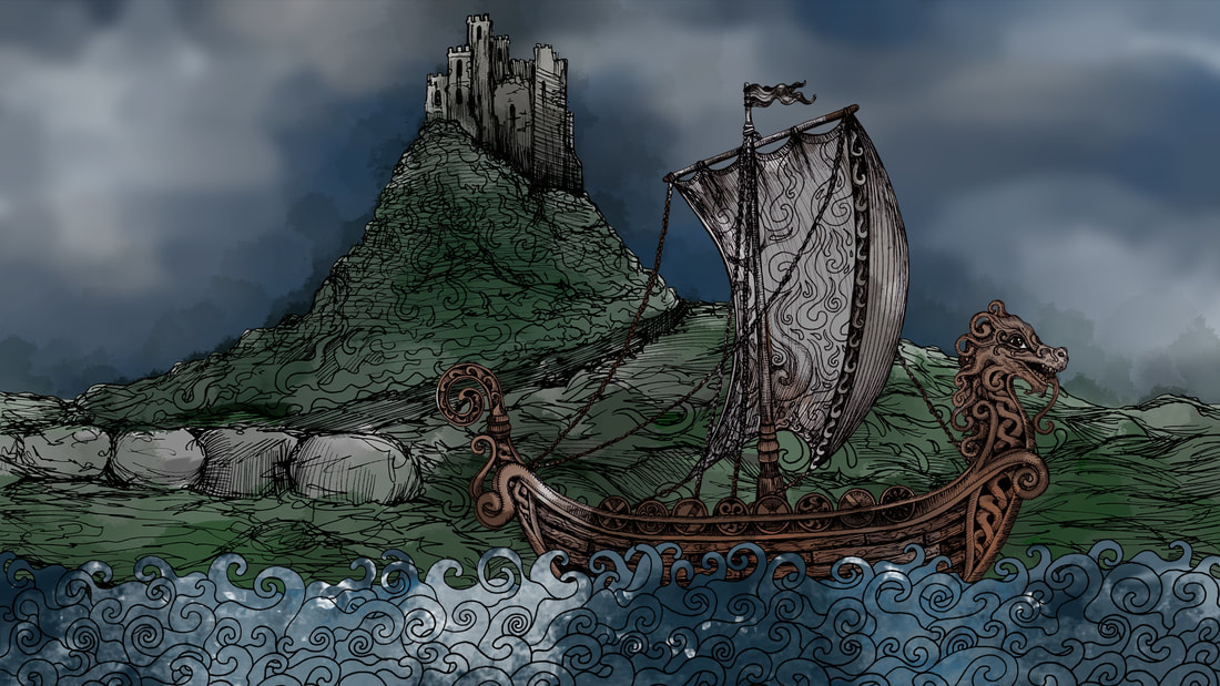 I chose to put Lindisfarne in the background of a Viking longboat sailing because it was one of the first landing sights of the Vikings.