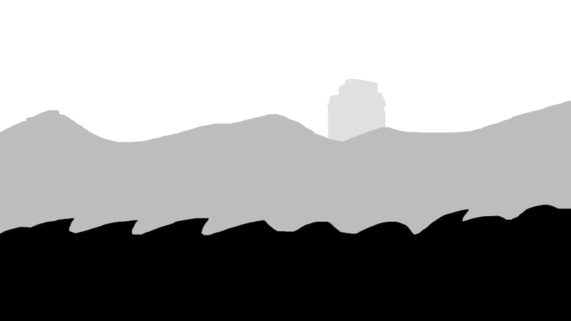 I really like how that worked because it allowed me to give the sky the appearance of a colour gradient while no using any other colours. Additionally I used a white