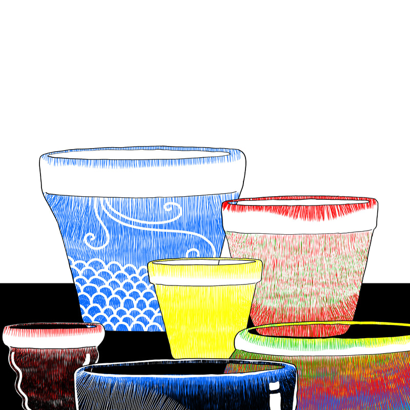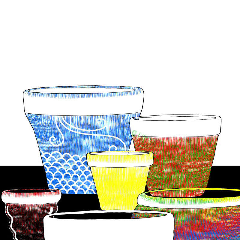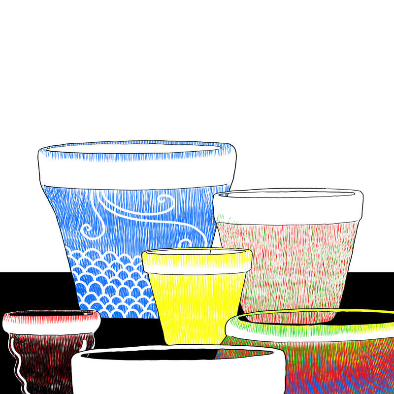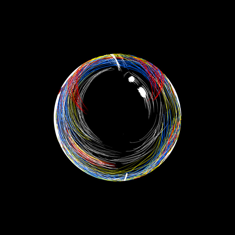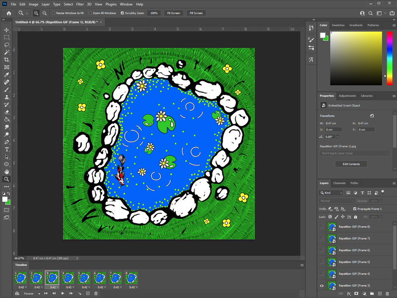 I started this GIF using traditional ink and paper, which I then scanned and used a filter to turn them into solid objects that I could fill in.
