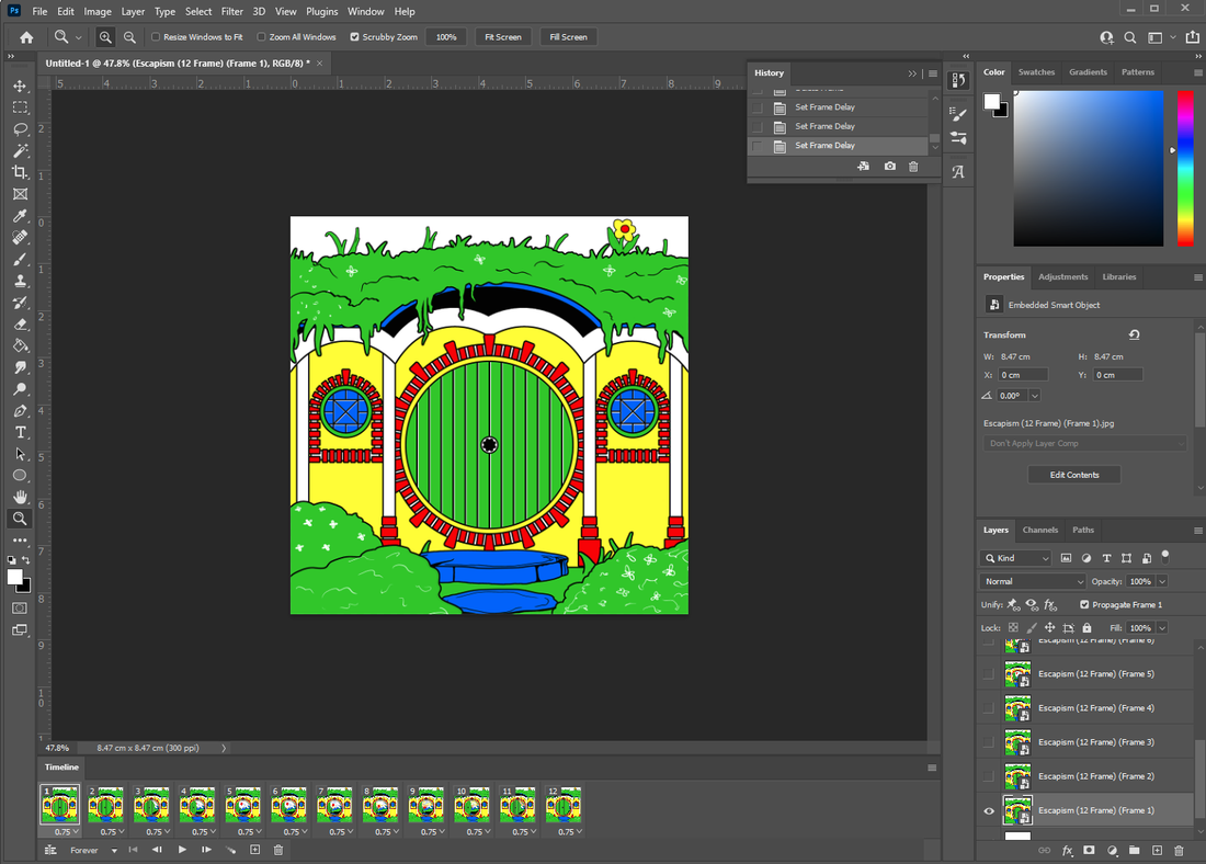 I decided to add a world behind the door for some extra escapism. Overall I am pleased with how this GIF turned out, however for a