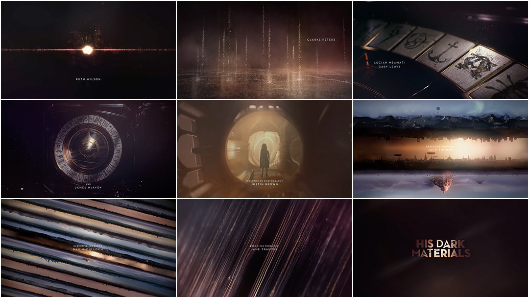 I have loved this title sequence ever since I first saw it, the way that it blends a design that is inspired by linocut and woodblock prints, with wonderful digital textures is fantastic. The addition of the accompanying soundtrack just completes this title sequence, I have found that the addition of music isintegral to the effectiveness of any title sequence. I love the ribbon effect within the His Dark Materials title sequence, along with the colour scheme. But what really brings this sequence to life is the lighting effects within it, the blue and golden lighting brings an elegance to the whole thing. |