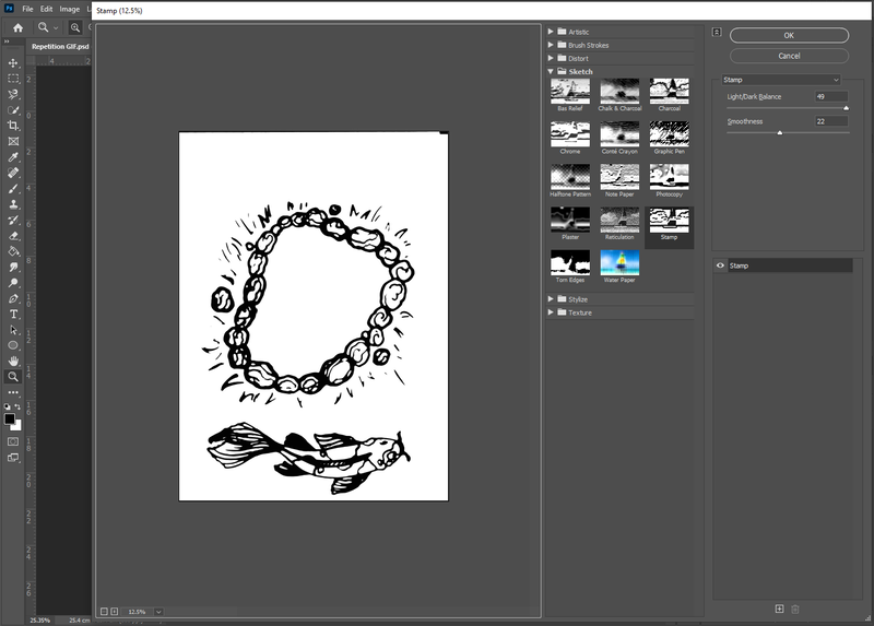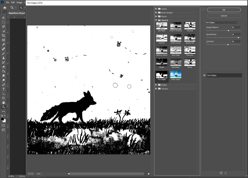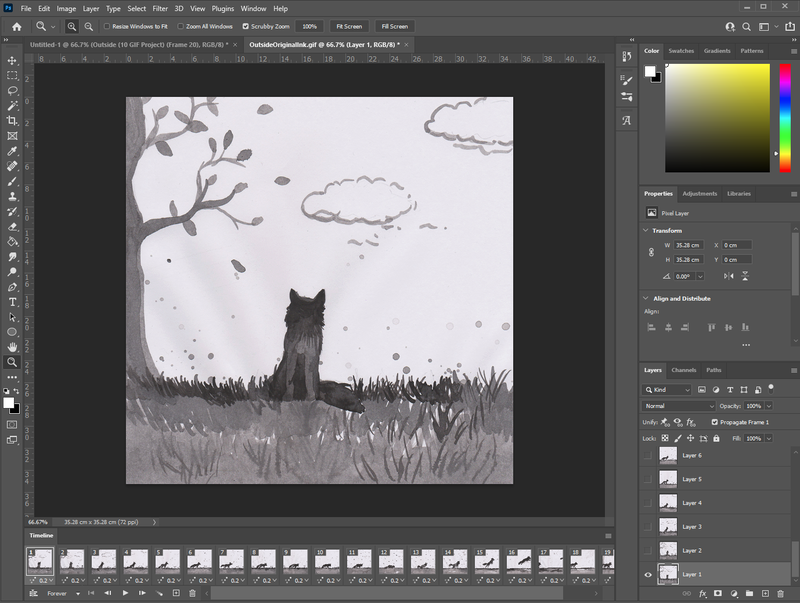For this GIF I went back to creating the frames with ink on paper then editing the images to be solid black and white.