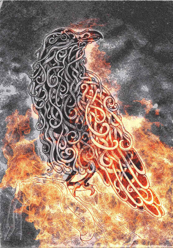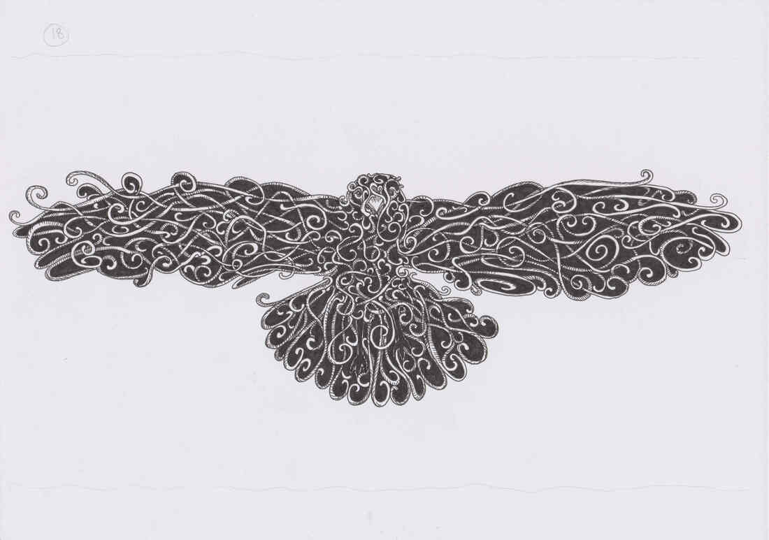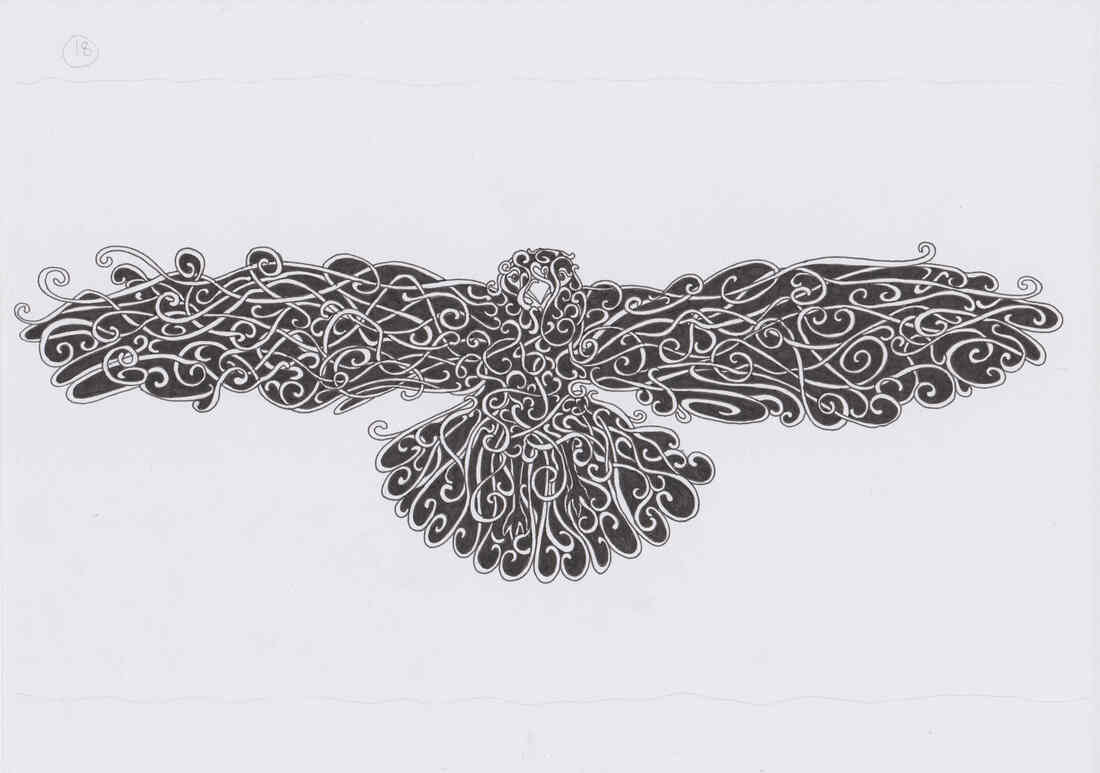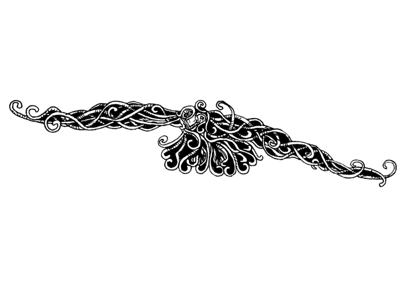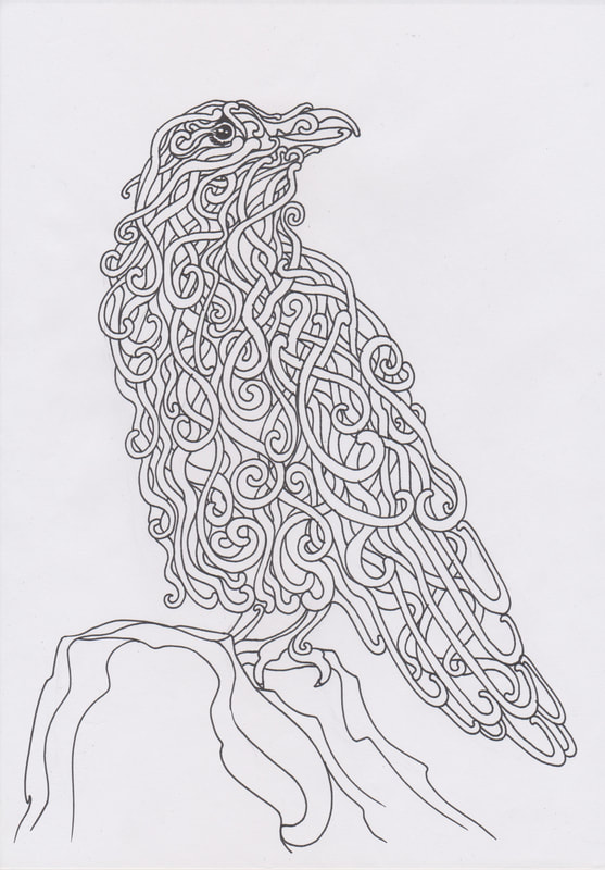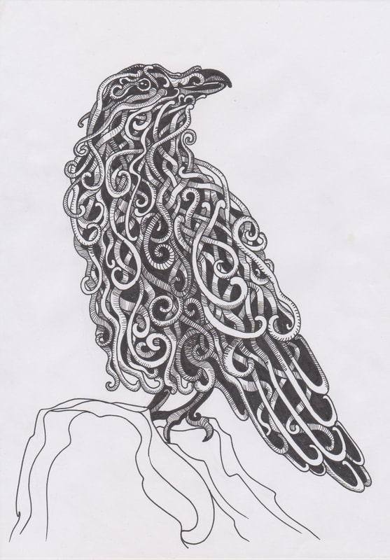 I was unsure how to start this section so I started by researching a Raven in flight, I found a few good videos to look at how flight movements work. I used one of these videos as a direct reference. After I picked the video to look at I sketched out twenty two frames to show the raven in flight and the feathers expanding at the end. Using this I am going to draw out each frame within the Nordic decorative style that I drew the boat in. |