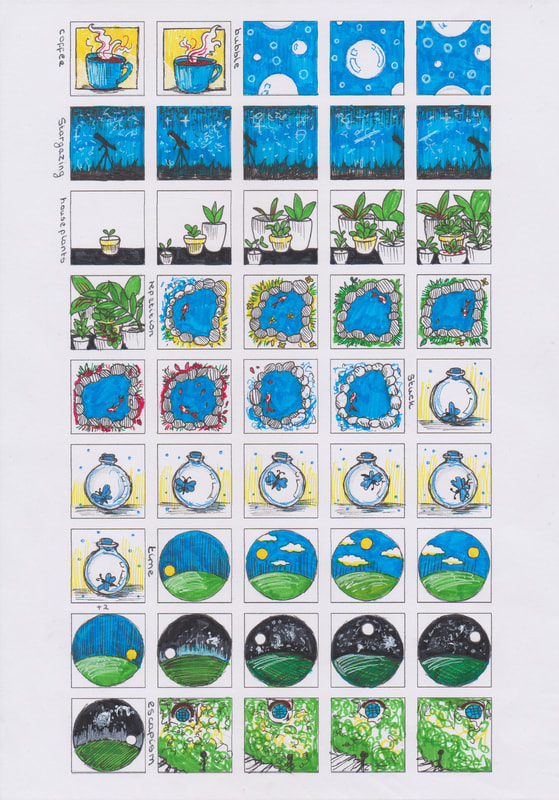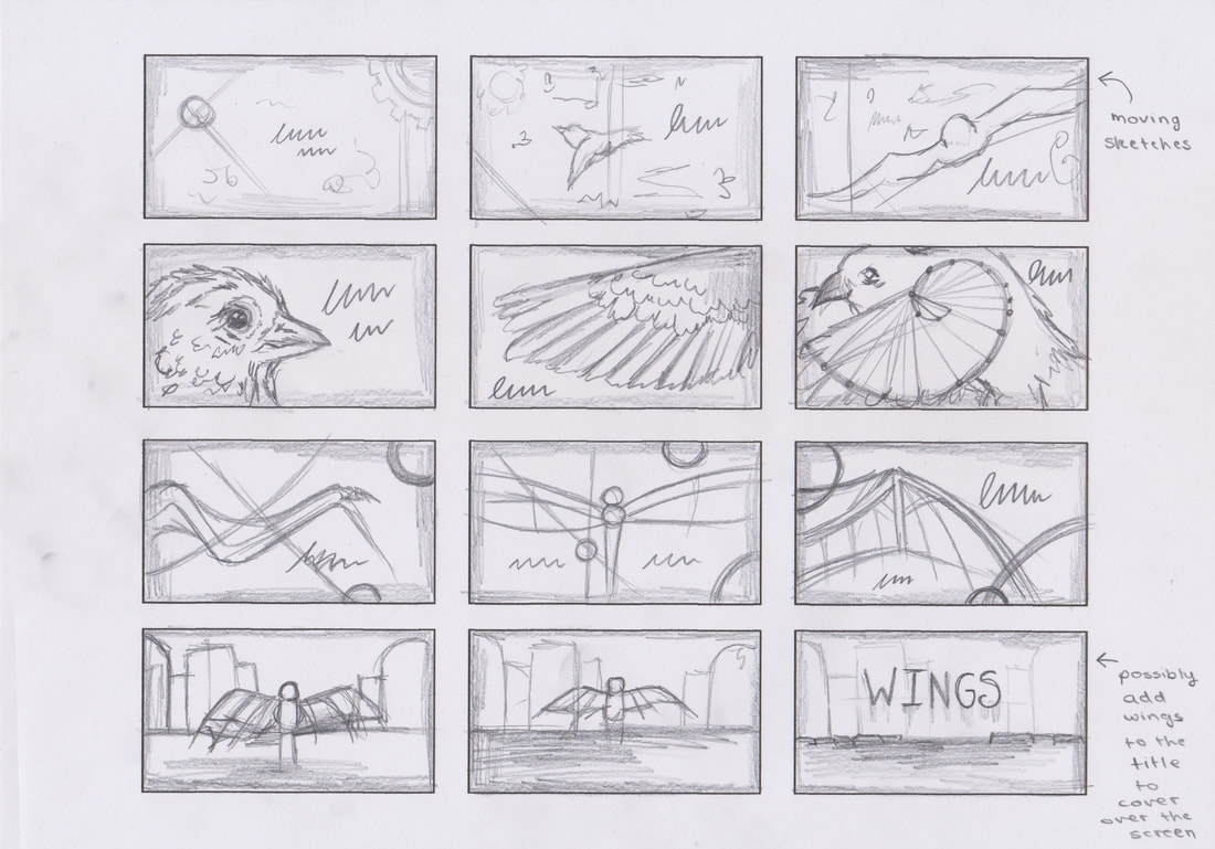 For the next set of my process I chose my favourite four ideas and made a storyboard for each of them.