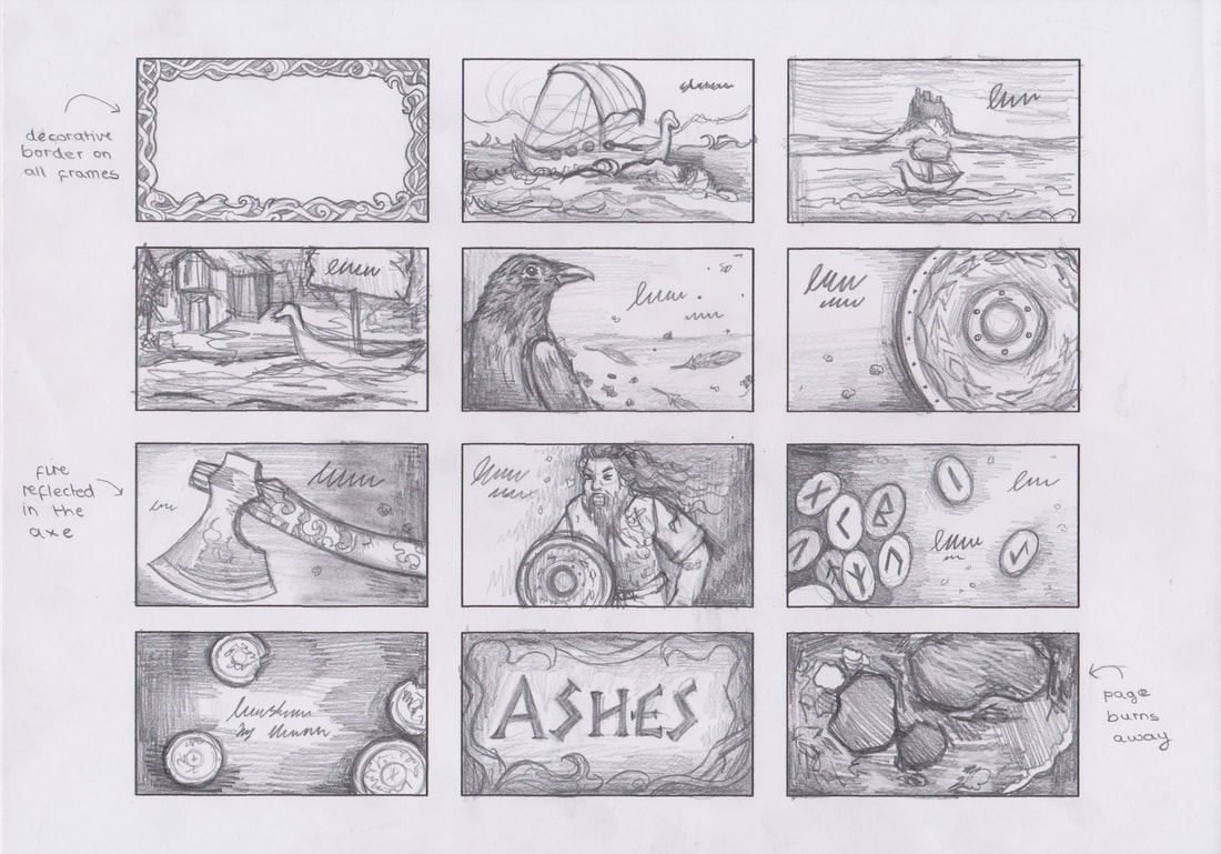Following on from the concept storyboards, I created two more realistic storyboards for the "Ashes" concept.
