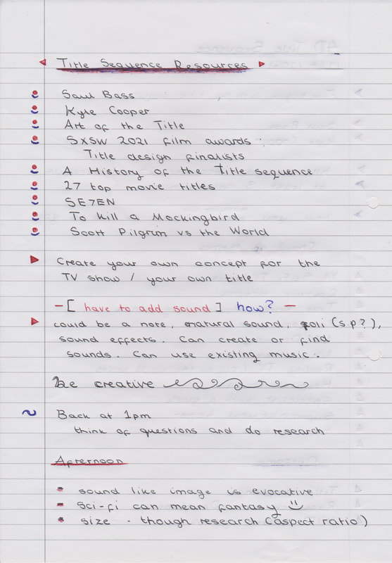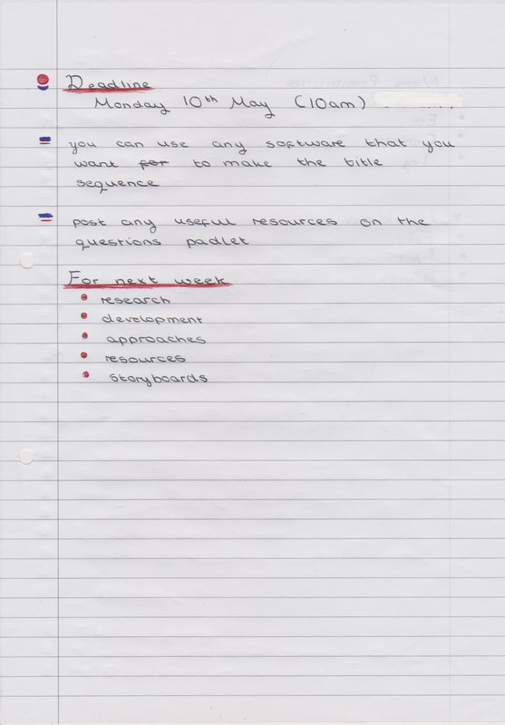 This has really helped me to understand how each image will flow into the next, and to work out the order of my title sequence.
