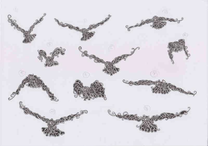 After sketching an ornamental pattern inspired storyboard I decided to start some testing of how a design like that would look.