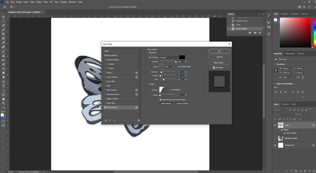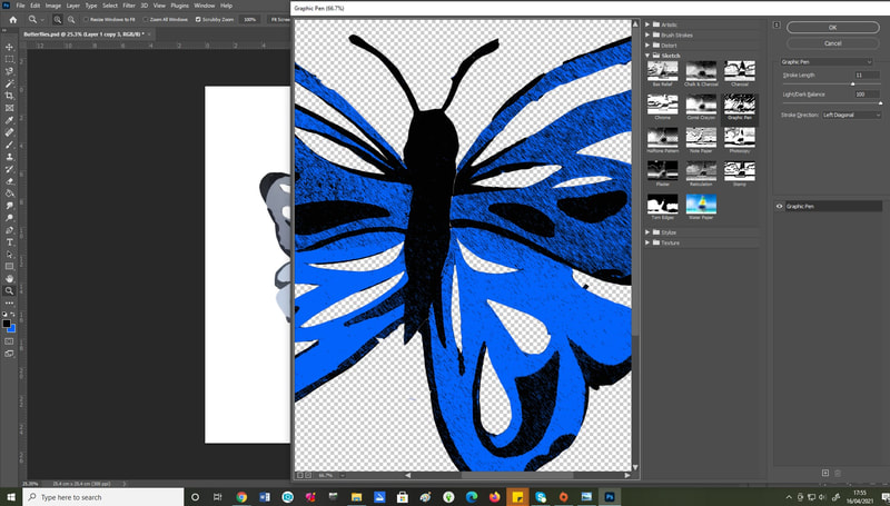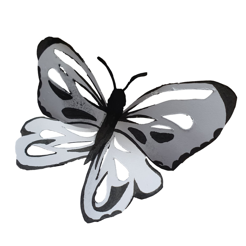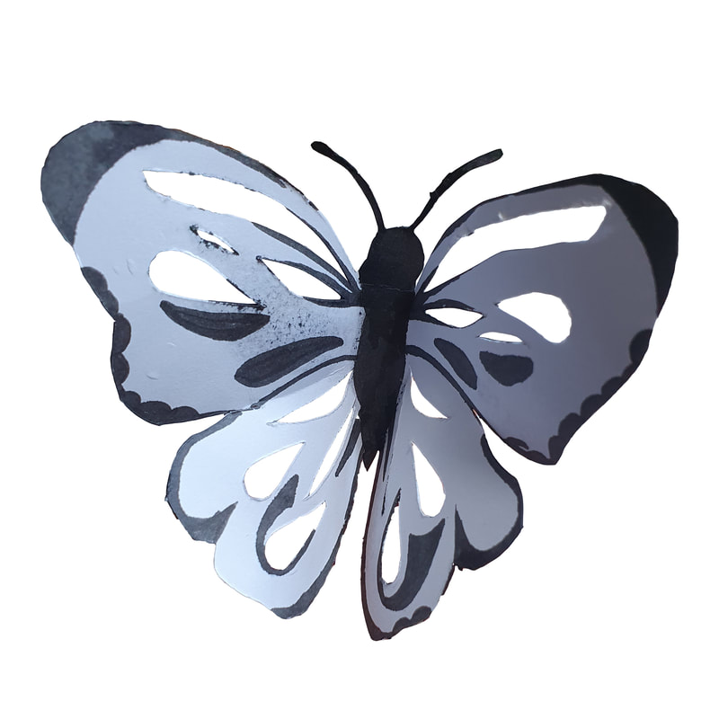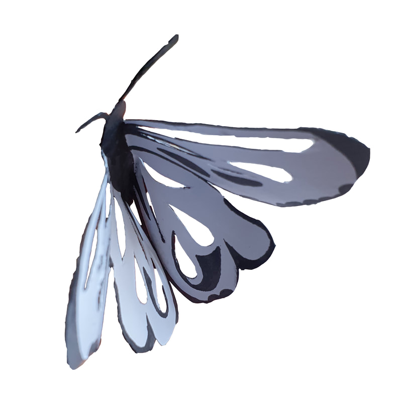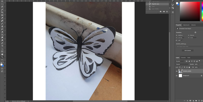 Additionally I created the butterfly out of paper and photographed it in different positions, which I then cut out and edited it to make the butterflies blue.