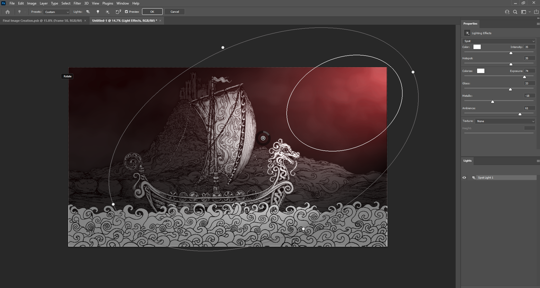 For the section of the title sequence that focused on a Viking warrior I needed to do some tests to help me work out how much of the previous design show show through.