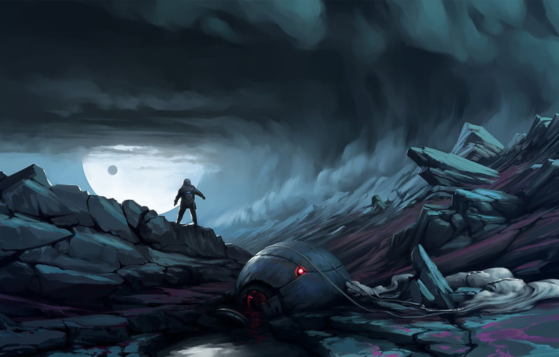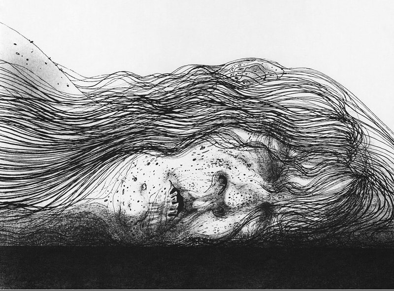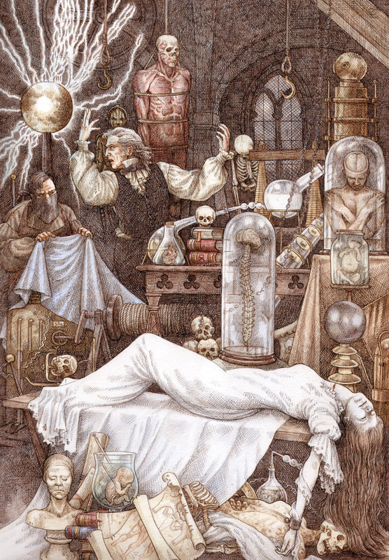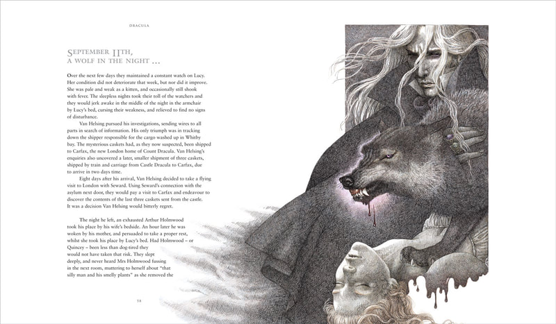 applied with a wide range of pens and brushes. He uses a combination of reference images and his imagination to create his powerful illustrations."