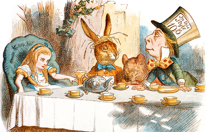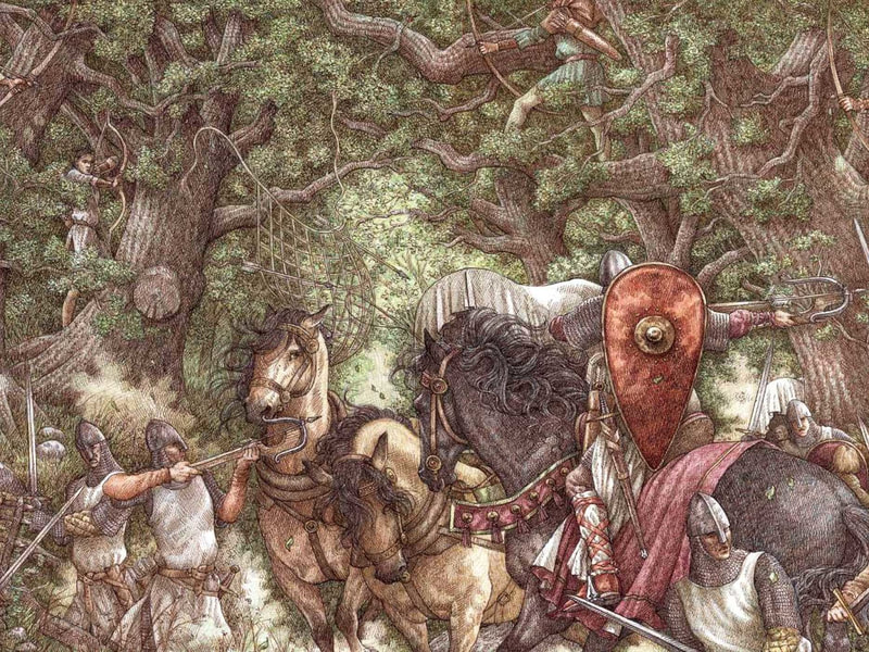 in her Robin Hood illustration the forest ground is tapered off into a point - she also did something similar in the Little Red Riding Hood illustration.