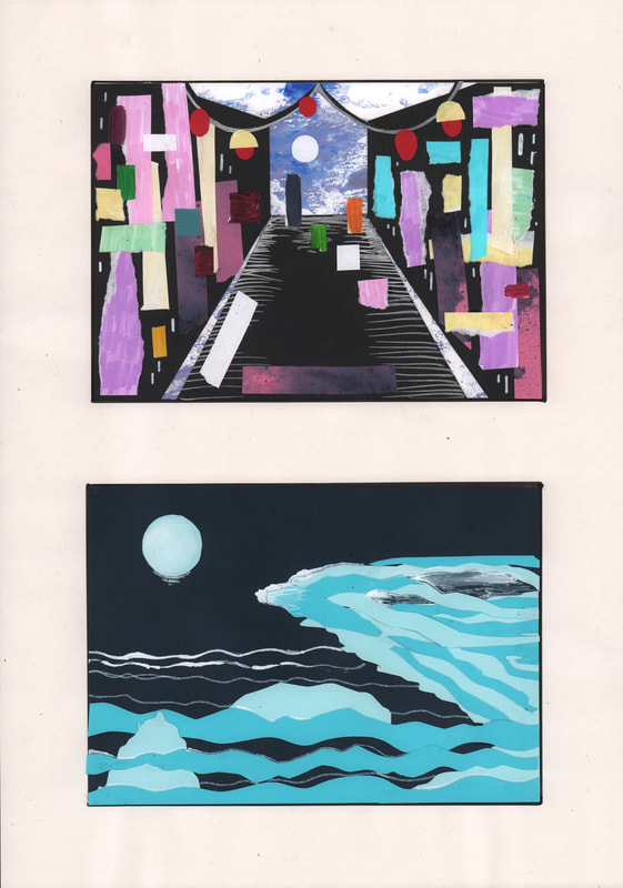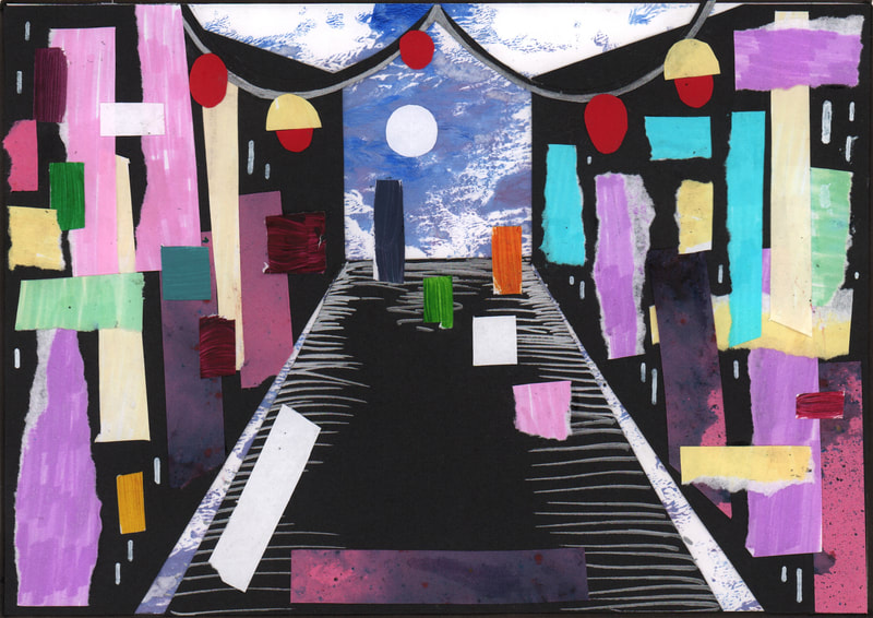 My other favourite is the collage for Tokyo, I tried to created the appearance of the the coloured lights and billboards using coloured squares of paper.