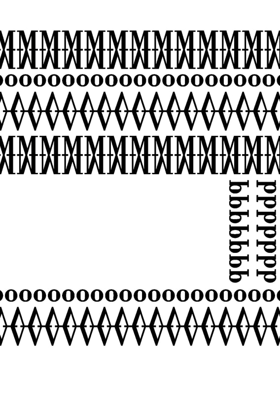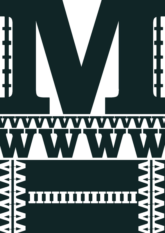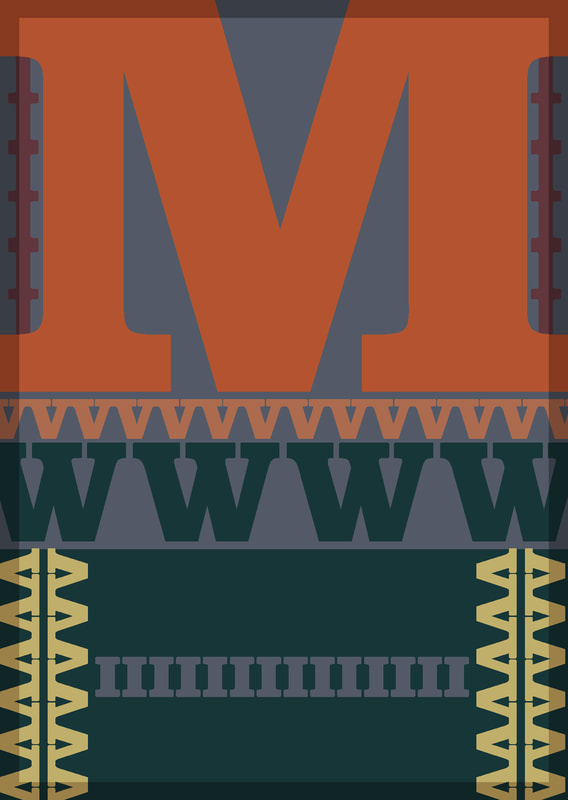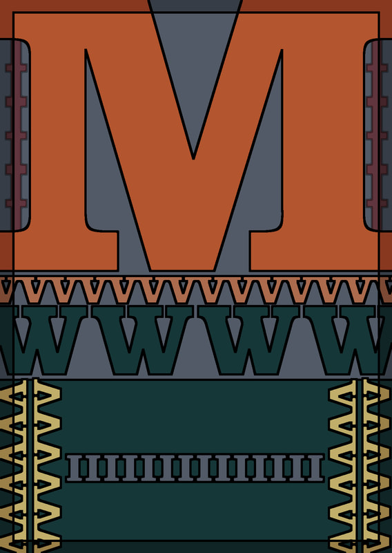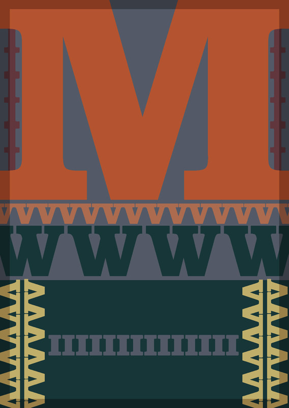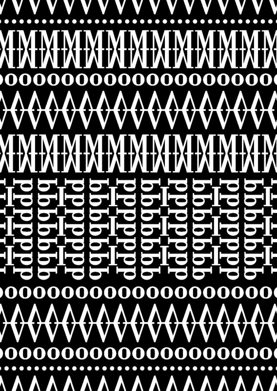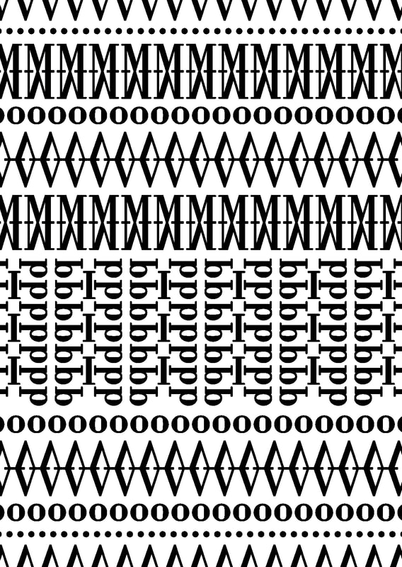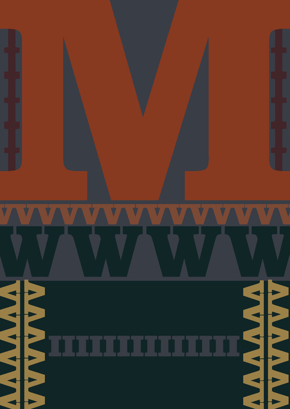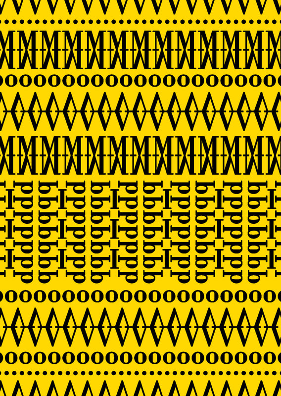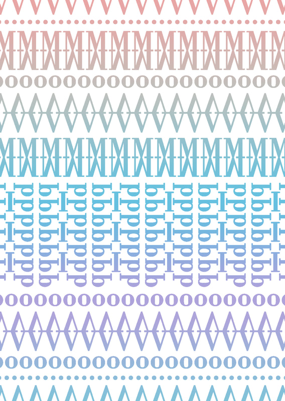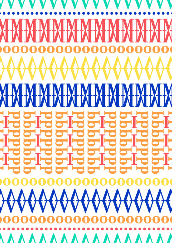 I used the typeface "Bodoni" because it lined up well to make a pattern; I especially liked how the "M" and "V" worked, I think that when they are flipped and lined up they make really nice lines of pattern. Additionally I used a collection of colours that I think went quite well together for the pattern type design.