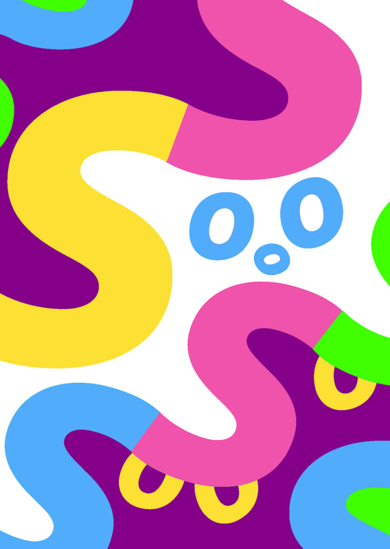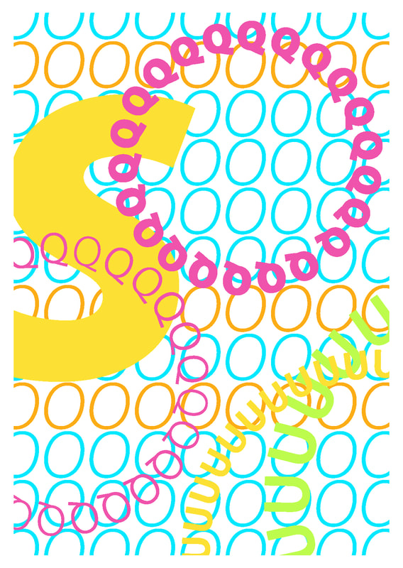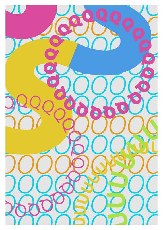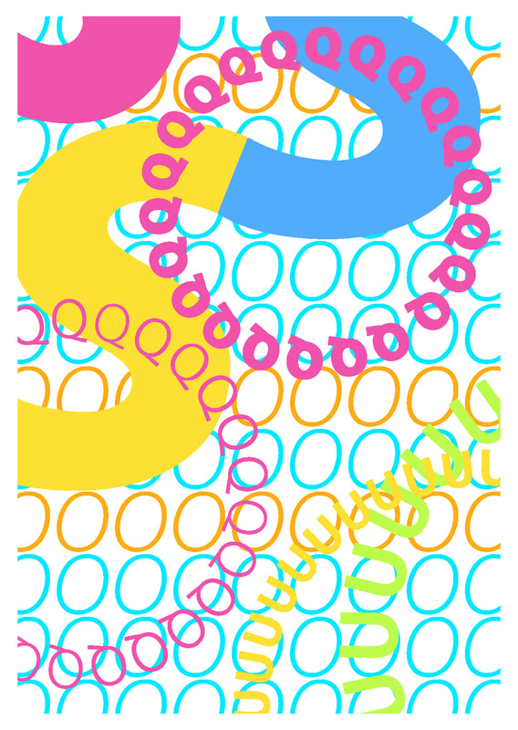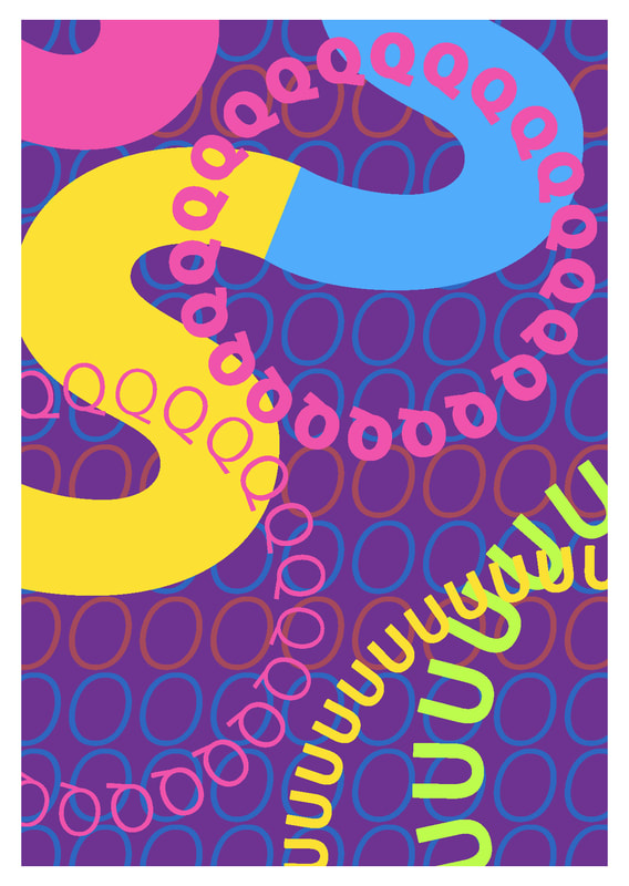I found this type design very strange overall, to make the image playful I decided to add in a lot of colours that would clash against each other.
