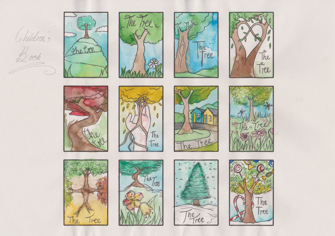 I started my thumbnail visuals by creating some images for the Children's Book cover. To make them all seem like children's books I tried to keep all of the colour schemes warm.