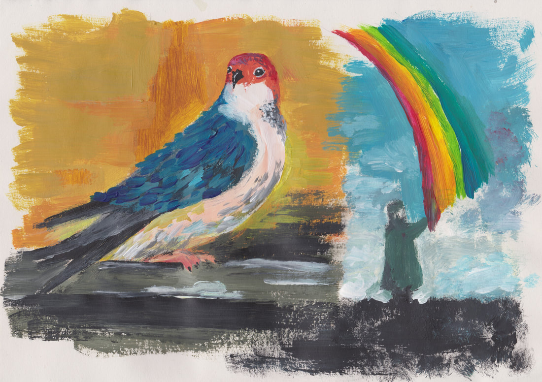 I then tried my best to recreate those colours through mixing - I think this process worked well overall.