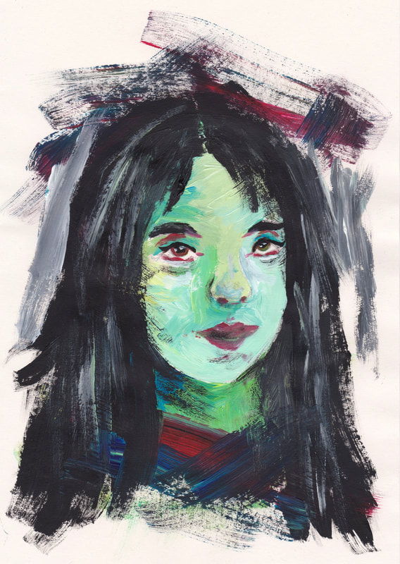 She bases her work on reference photographs of her friends which will be traced/projected onto the board."