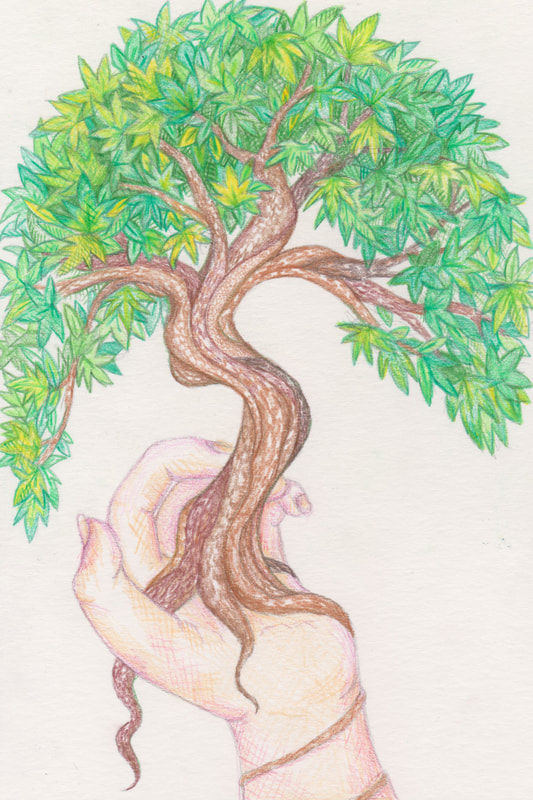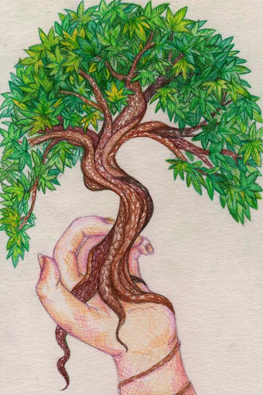 I created the pencil children's book cover using greens for the leaves, but when I scanned it I decided I didn't like it that much.
