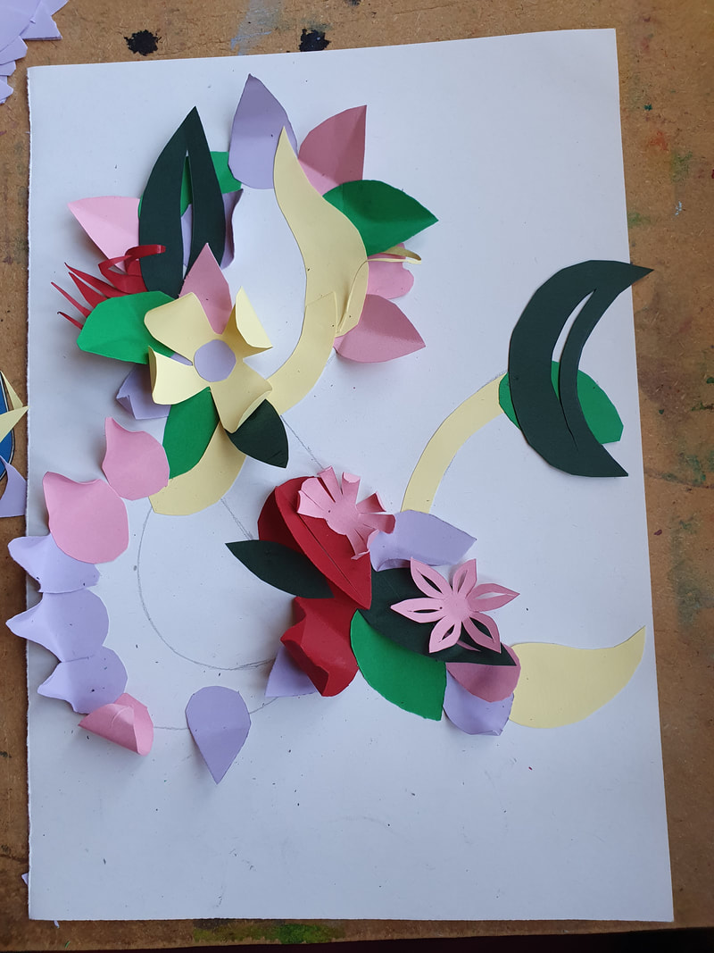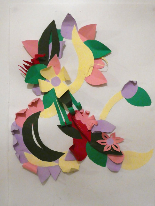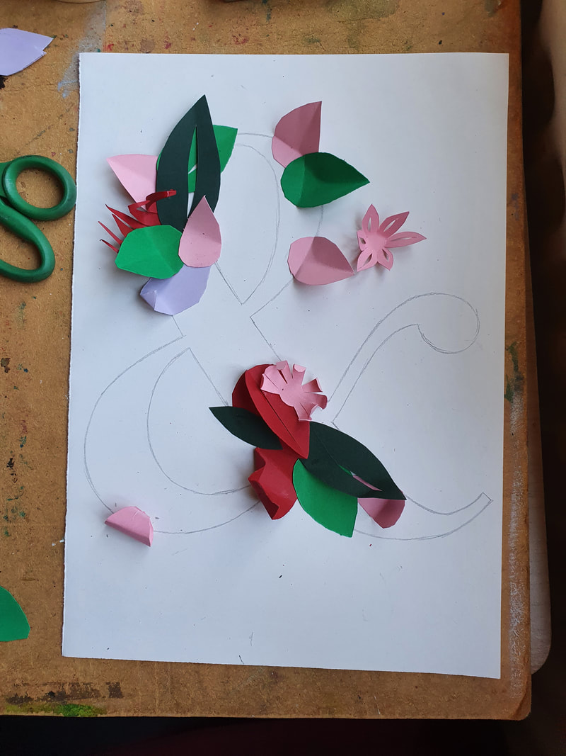I created this ampersand based on the "garden" I used a collection of paper flowers and leaves to construct this letter, this gave me the opportunity to