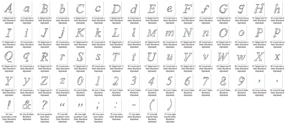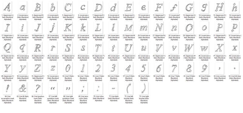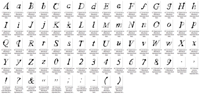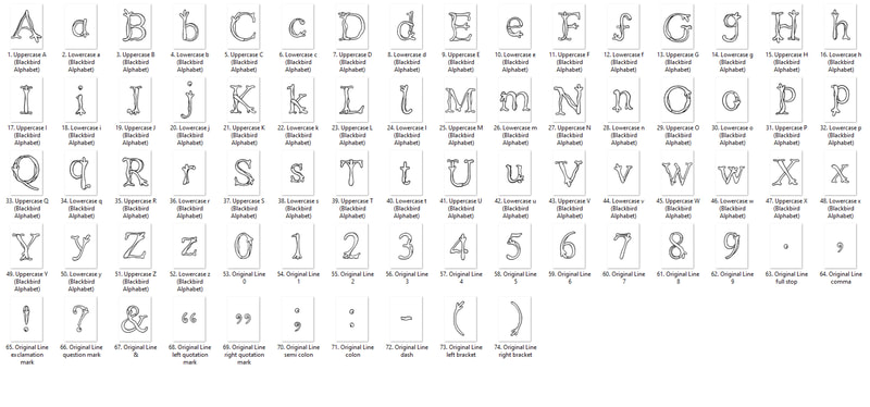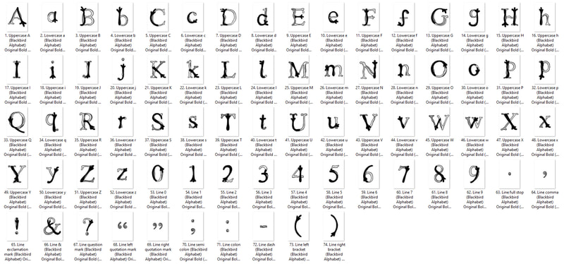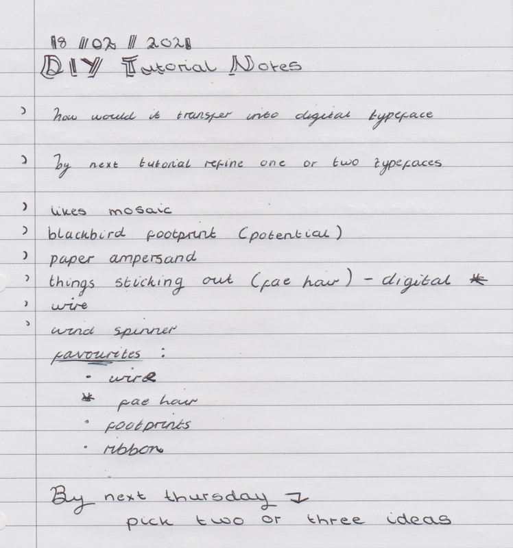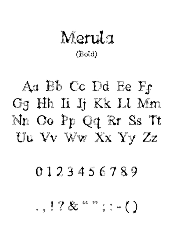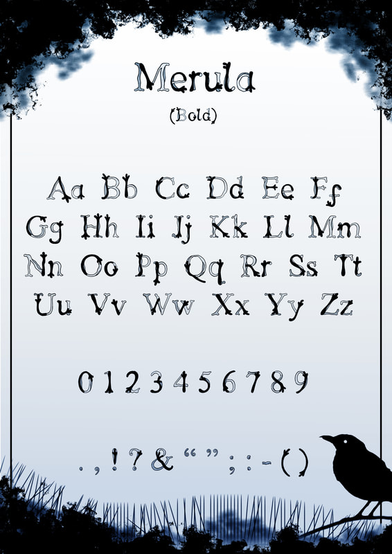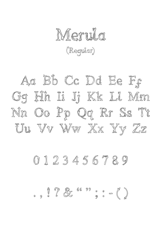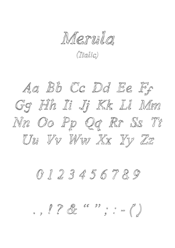 I decided on the name "Merula" for my Blackbird footprint inspired typeface. Previously I had considered "Feathers and Frost" which was inspired